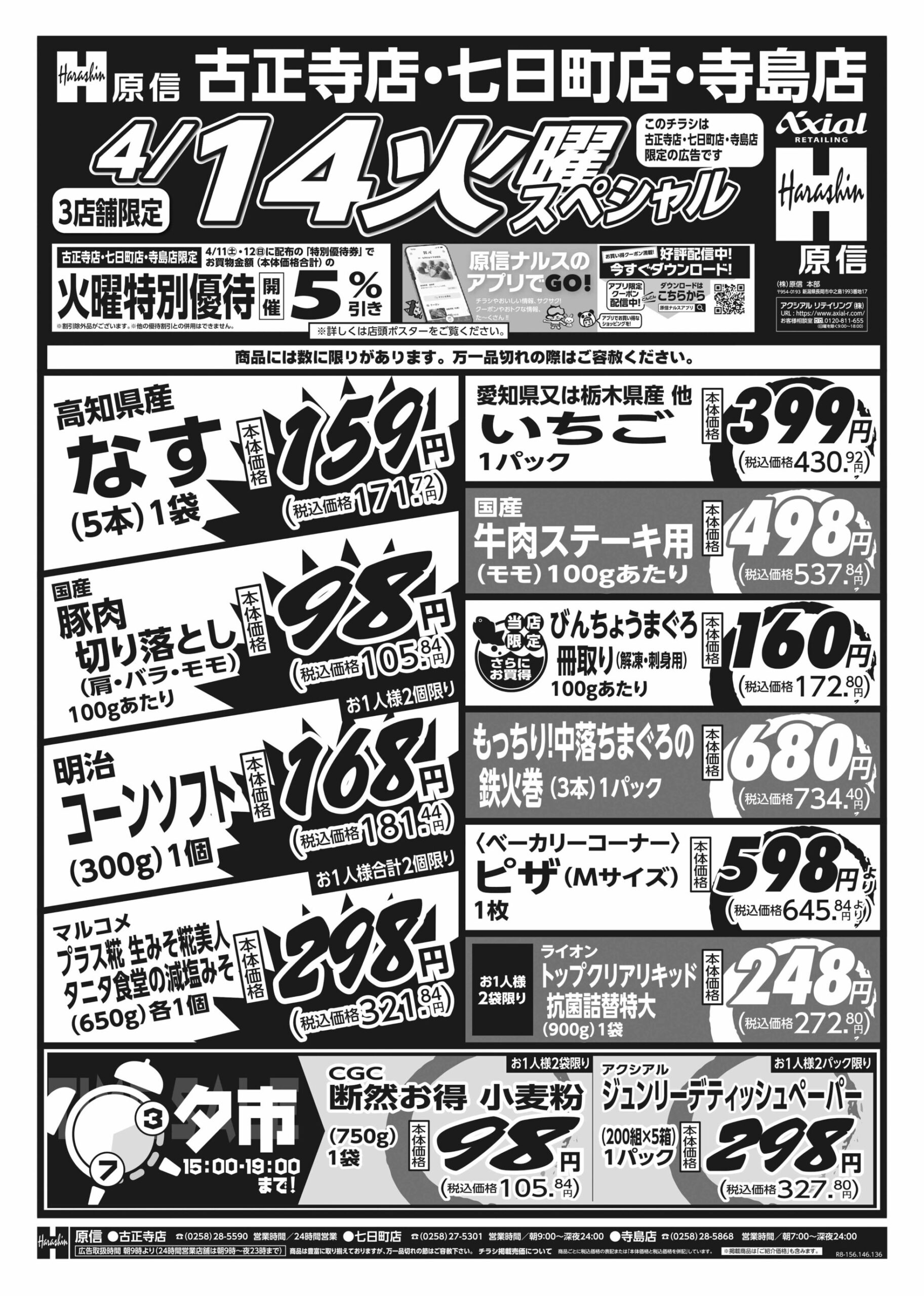 【原信ナルス古正寺店・七日町店・寺島店チラシ】火曜スペシャル/水曜スペシャル
