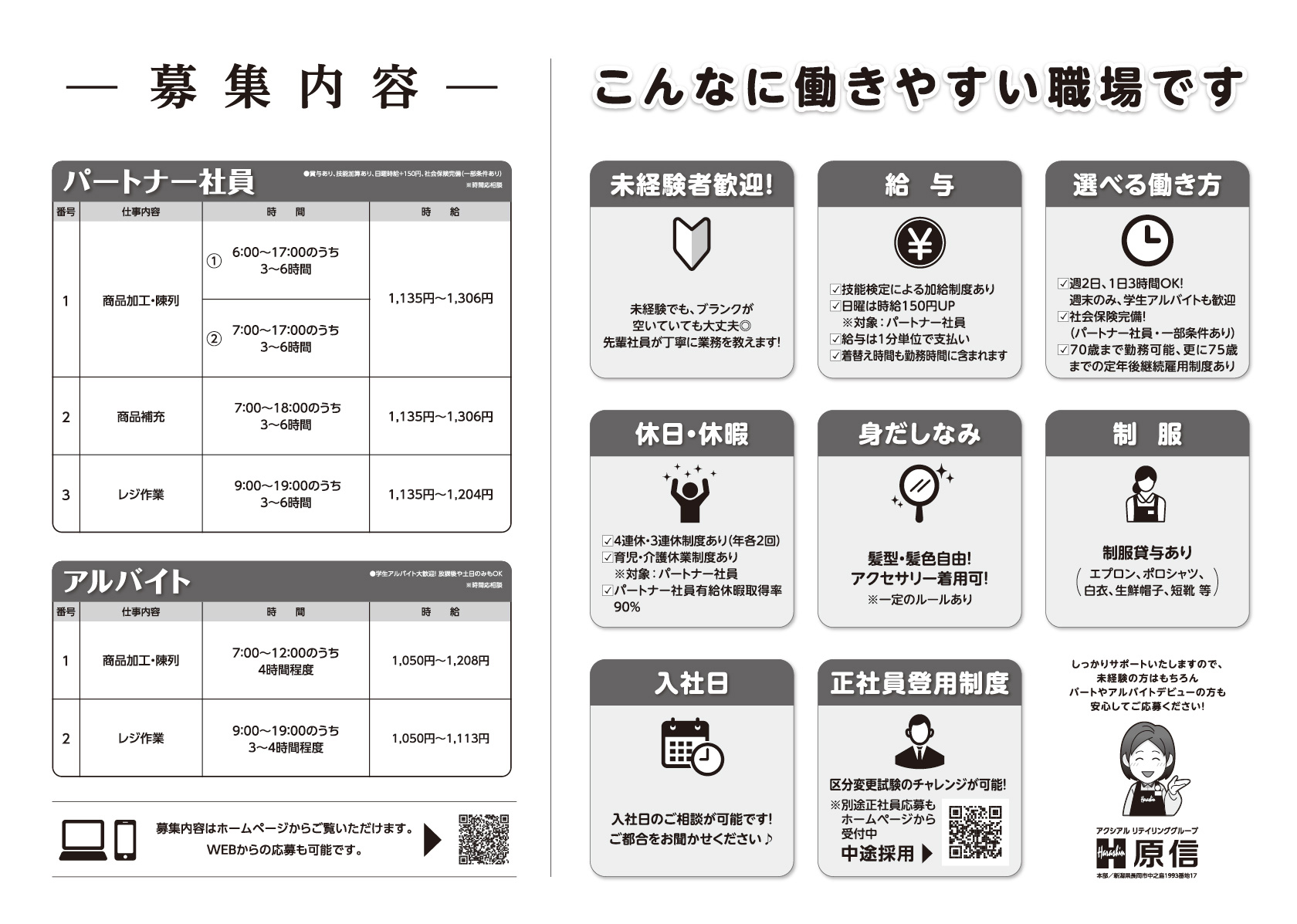 TOP > チラシ情報 > スーパー > 原信ナルス > 【原信ナルス村上インター店チラシ】パートナー社員・アルバイト 募集<おしごと説明会開催>