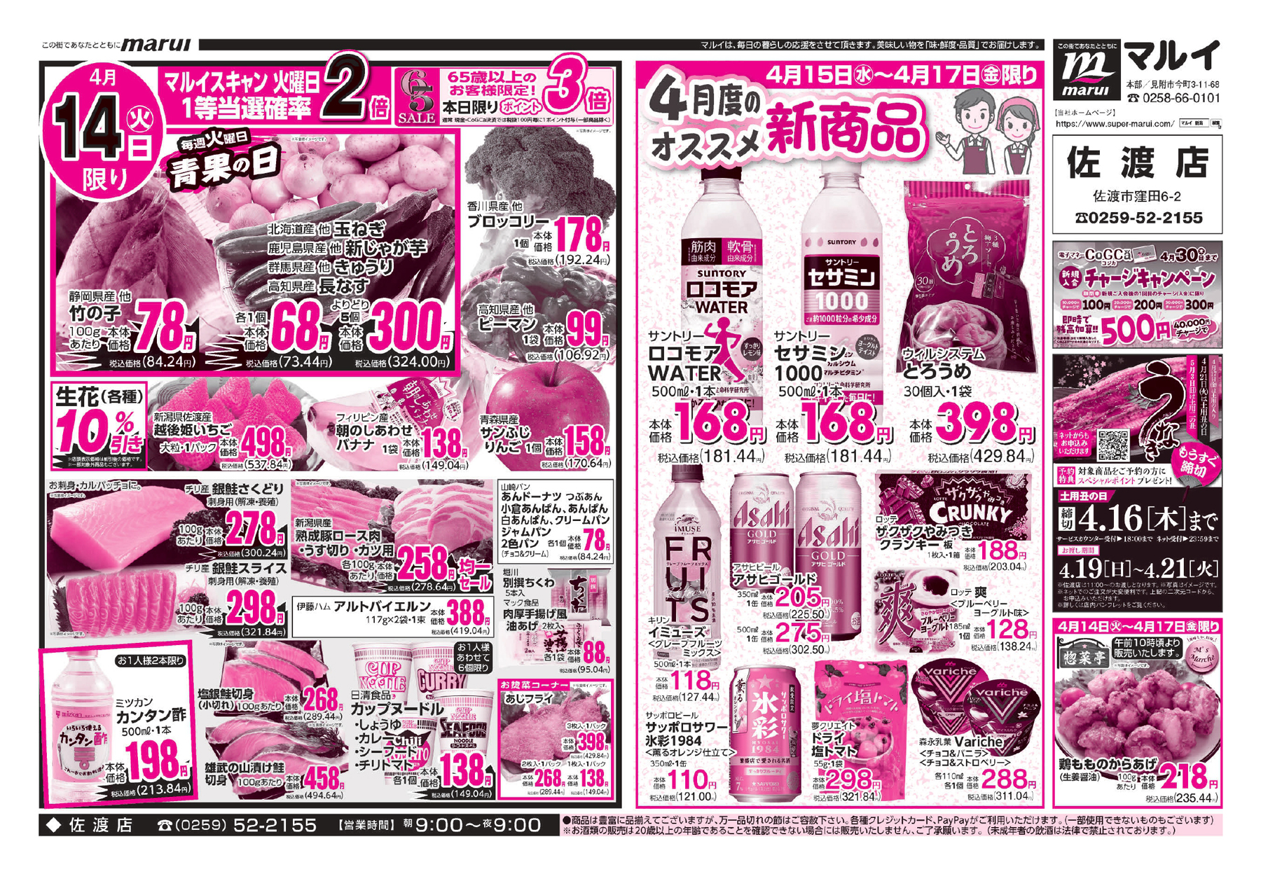 【マルイ佐渡店チラシ】4月度のオススメ新商品