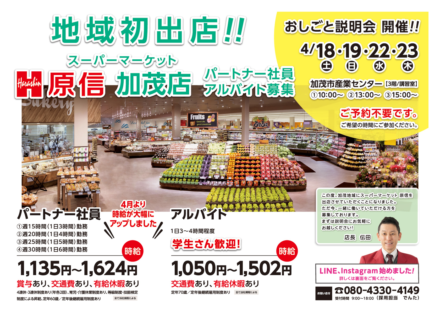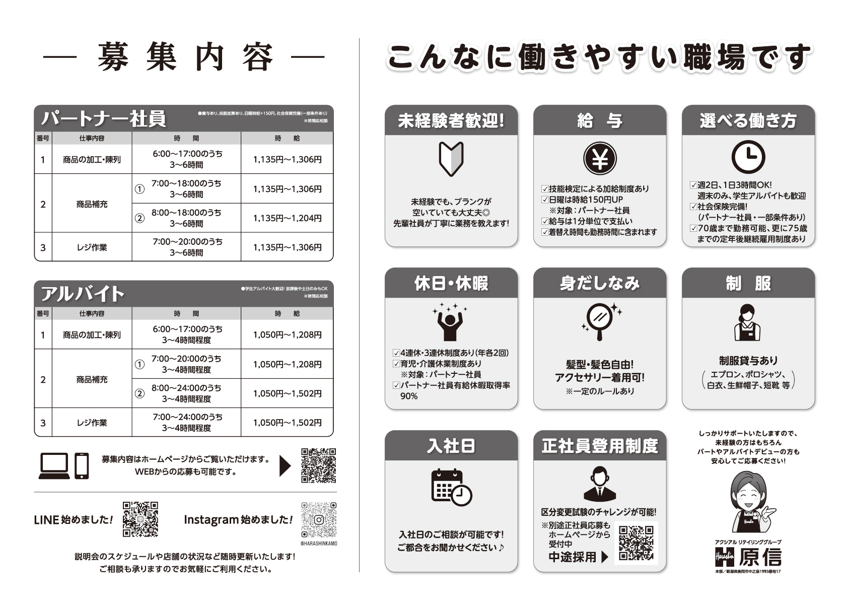 TOP > チラシ情報 > スーパー > 原信ナルス > 【原信ナルス加茂店チラシ】パートナー社員・アルバイト 募集<おしごと説明会開催>