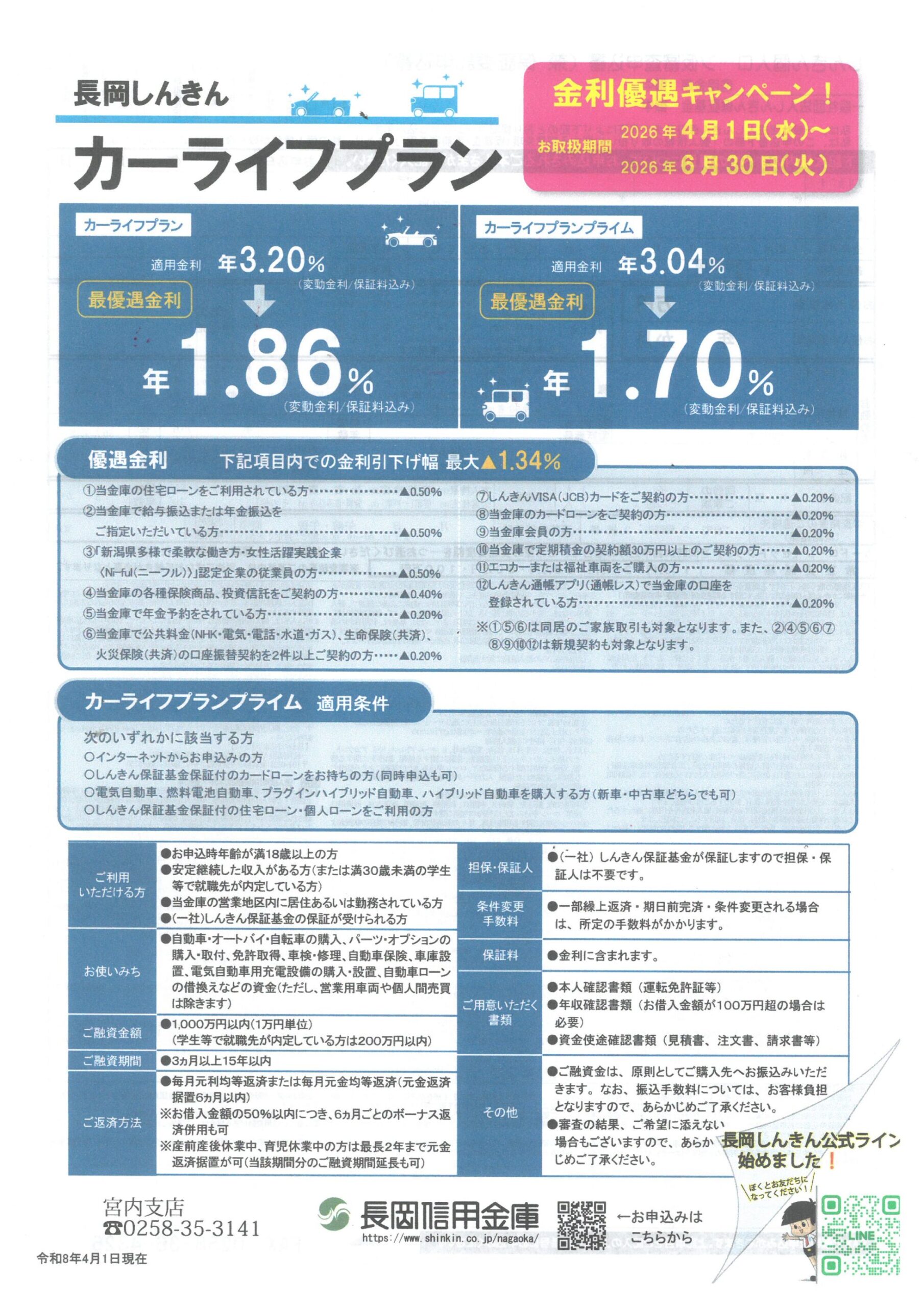 長岡信用金庫宮内支店 【長岡信用金庫宮内支店チラシ】カーライフプラン 掲載期間:2026年4月12日〜2026年6月30日 中越 生活サービス 画像をクリックして拡大 prev next セール・新店情報を見逃さない! ガタチラをホーム画面に追加して、 最新情報をすぐチェック▶追加方法はかんたん♪ 関連 無理せず車を購入したいわね!