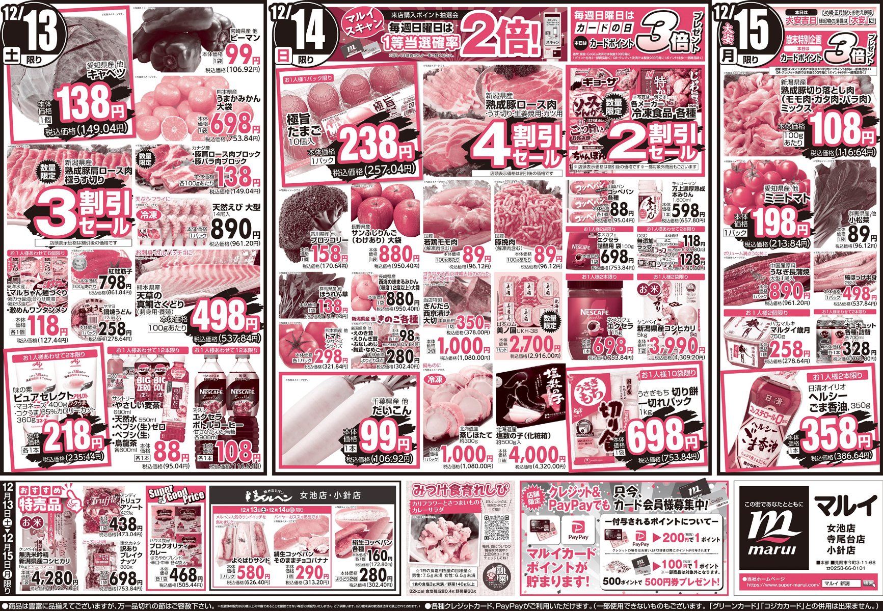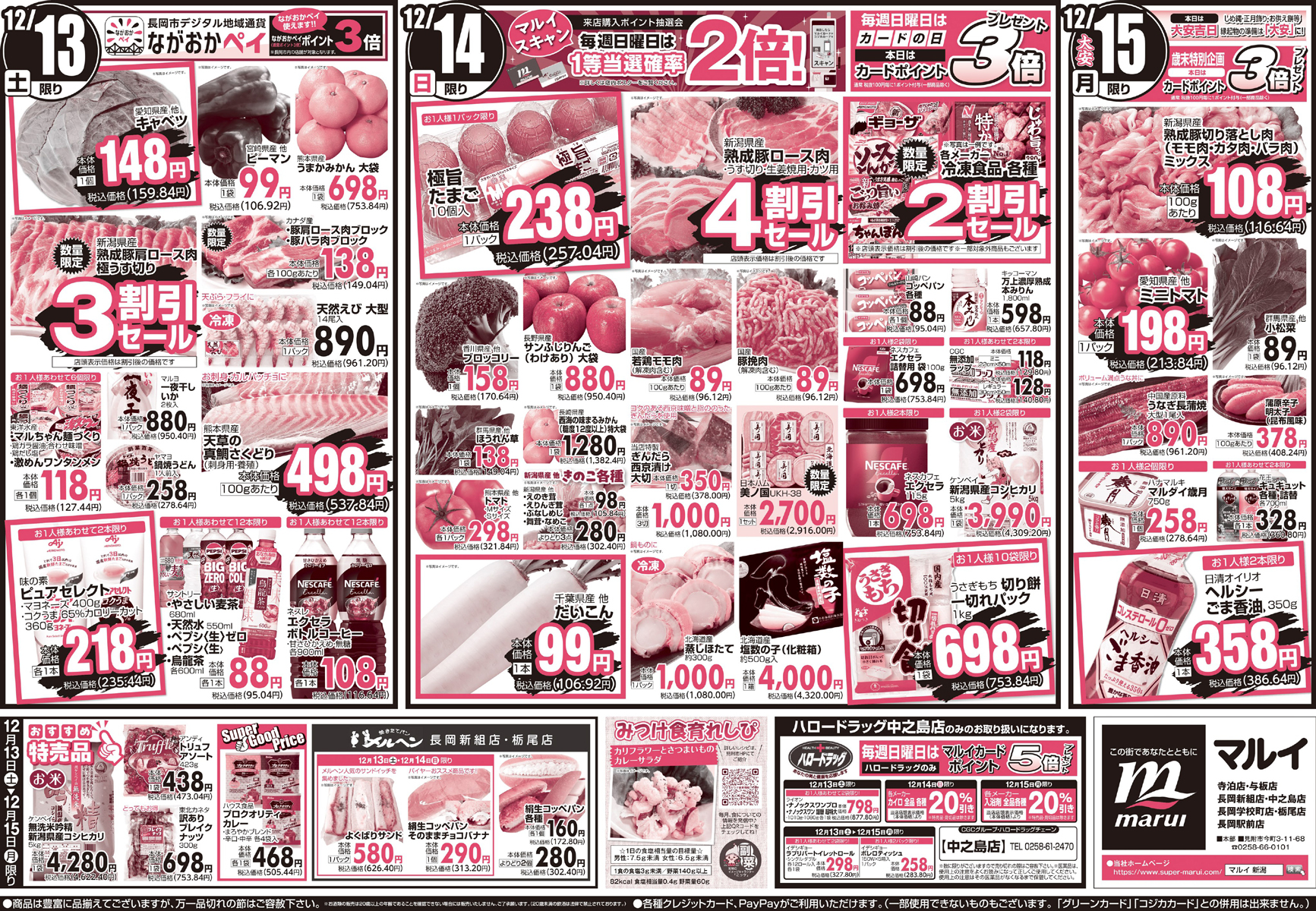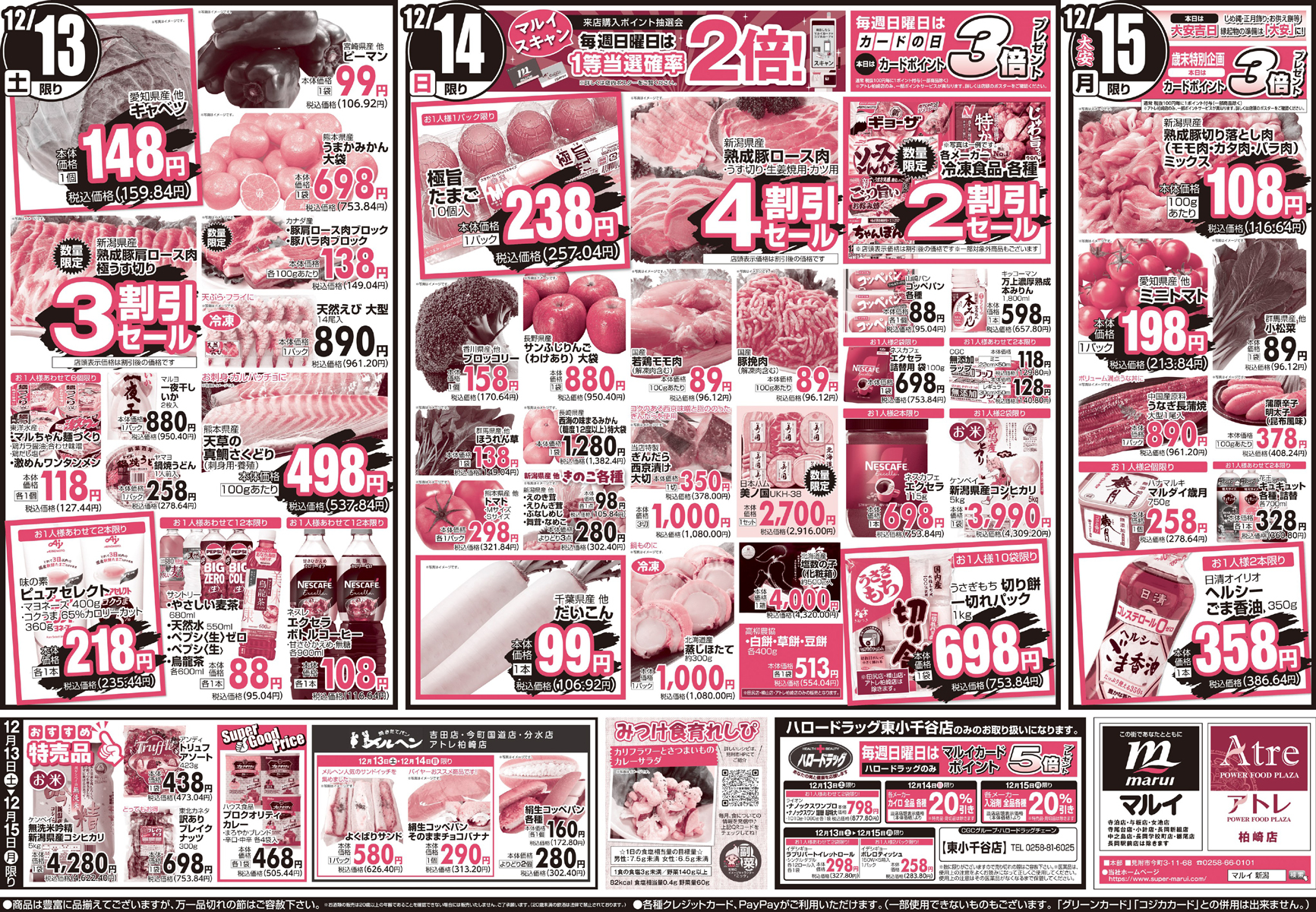 TOP > まとめ記事 > 【新潟県】特売セールのチラシをご紹介!12月13日「スーパーマルイ」の新潟県産豚 極うす切り‟3割引セール″