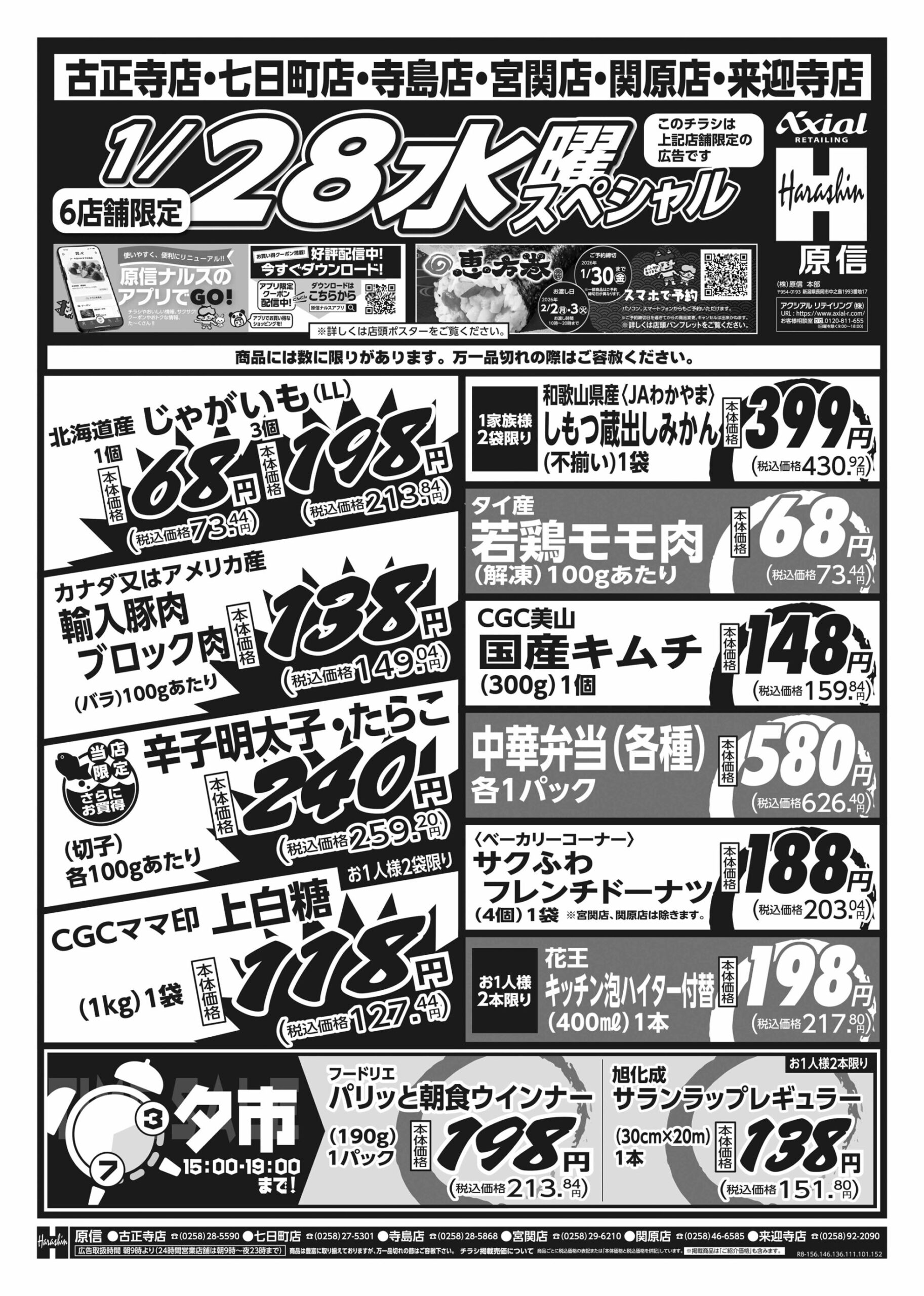 原信ナルス古正寺店・七日町店・寺島店・宮関店・関原店・来迎寺店