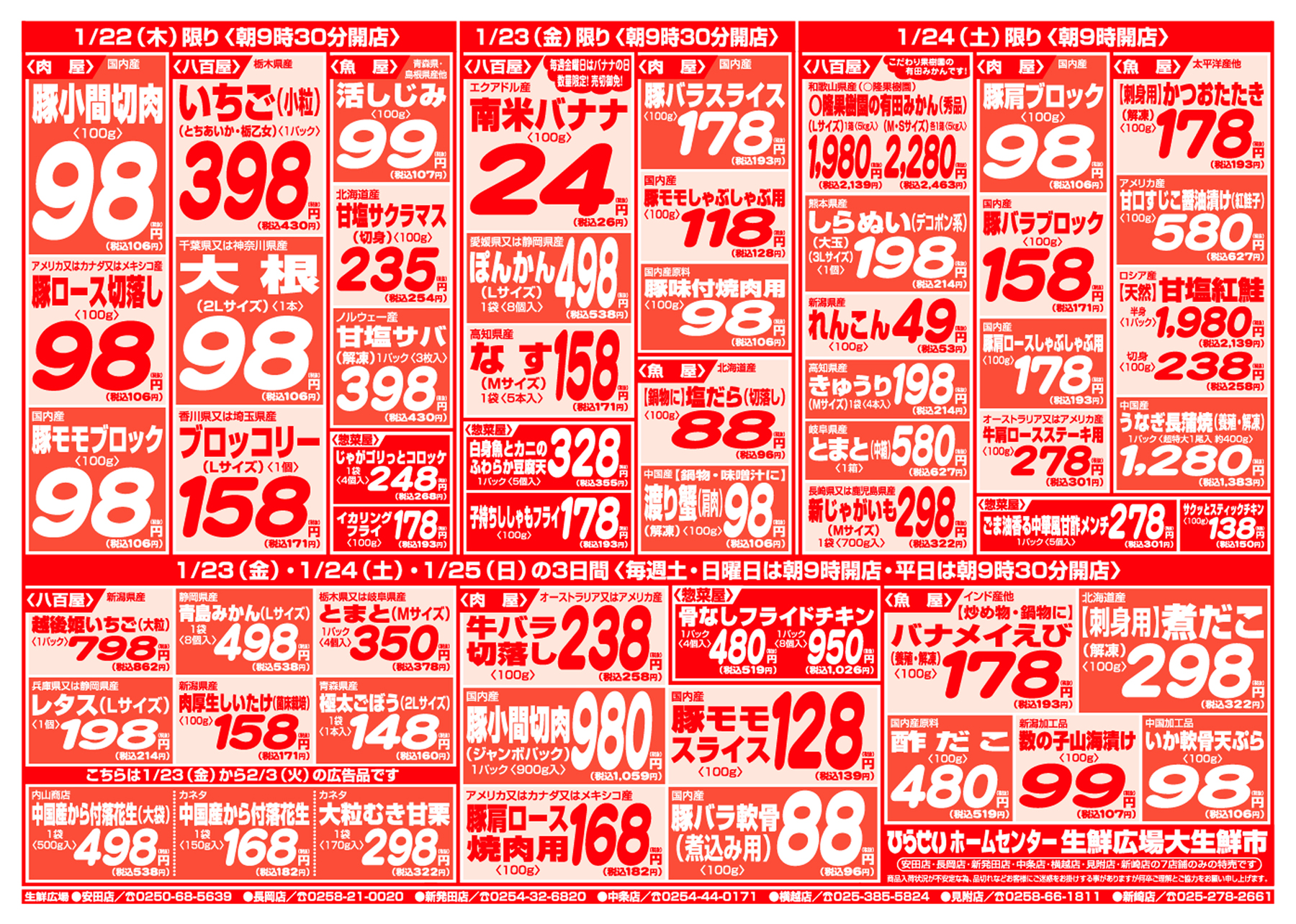 対象店舗:佐渡店・中之島店・長岡新組店・長岡学校町店・与板店・寺泊店・栃尾店・長岡駅前店・女池店・寺尾台店・小針店は除く