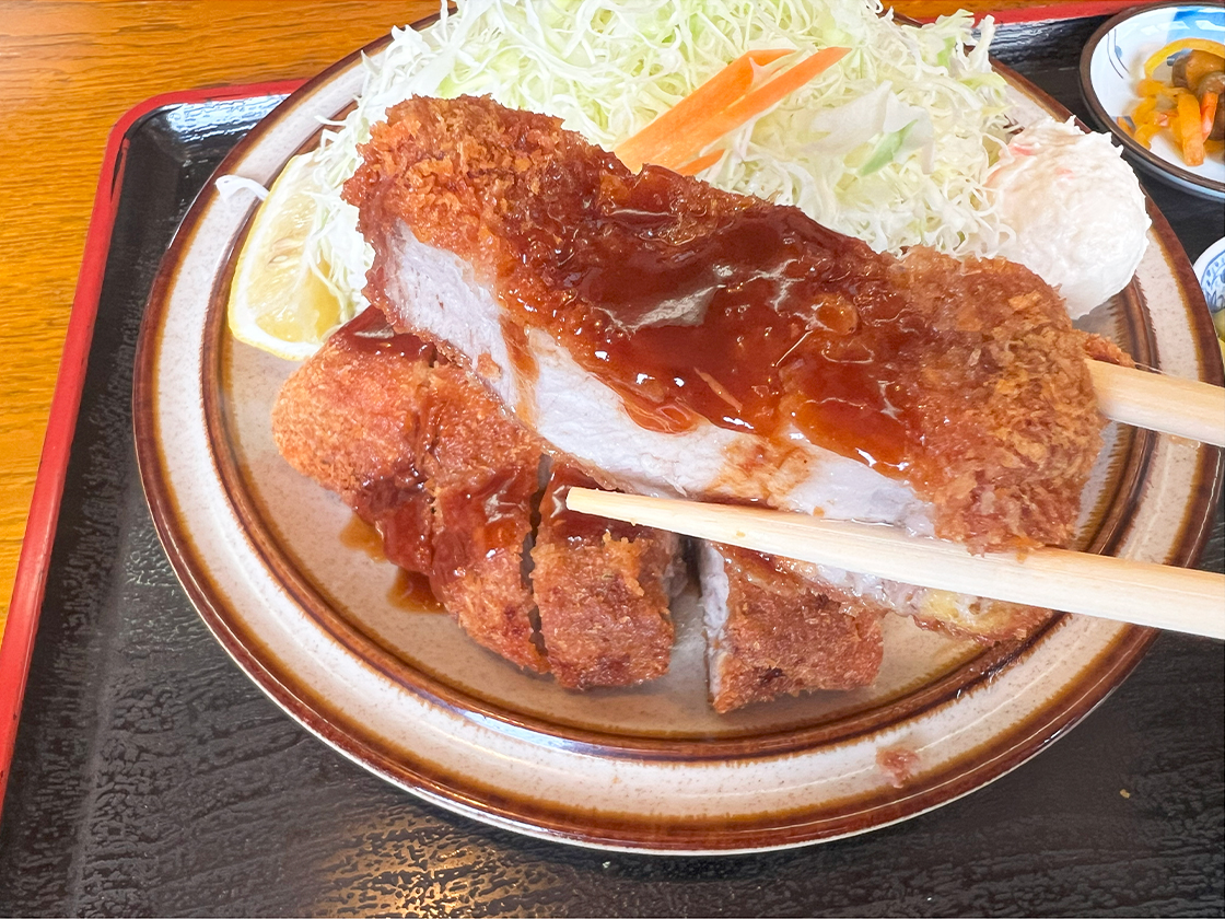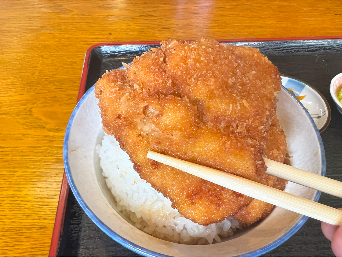 厚めに仕上げられたカツには、甘辛の醤油タレがしっかりと染み込んでいます!
