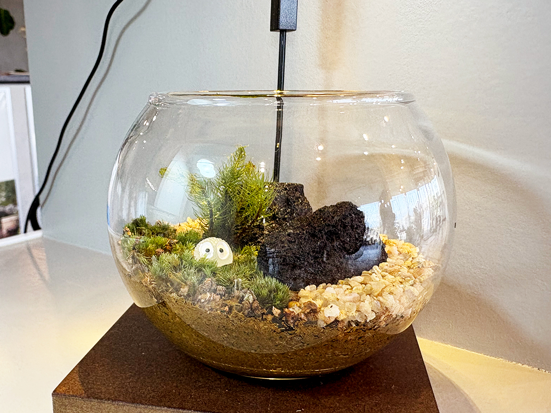 スタッフさんが丁寧にレクチャーしてくれるので、可愛らしいテラリウムを作れました♪
