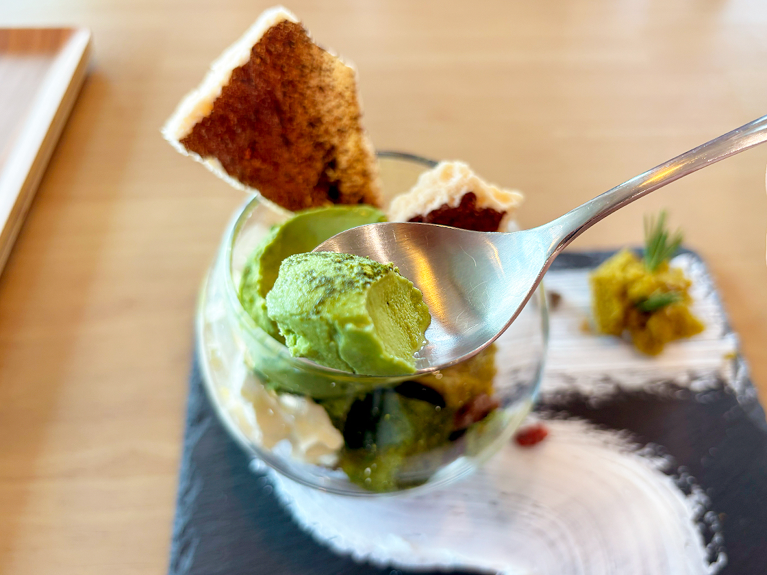 お茶の風味をしっかり感じる「緑茶ジェラート」や、苔を再現したふわふわの「抹茶シフォン」が絶品♪