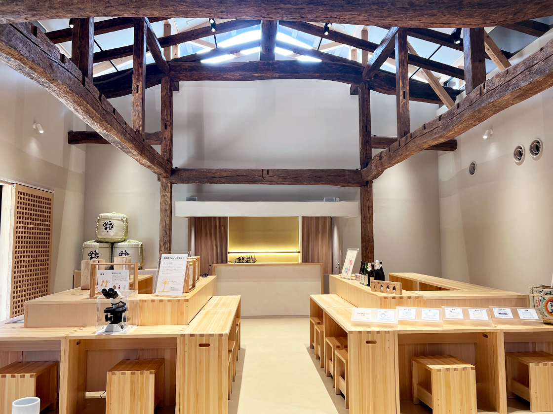 木材がベースの天井や梁、木枡の形の家具など、酒蔵らしい空間で“発酵エンターテインメント”を体感できますよ♪