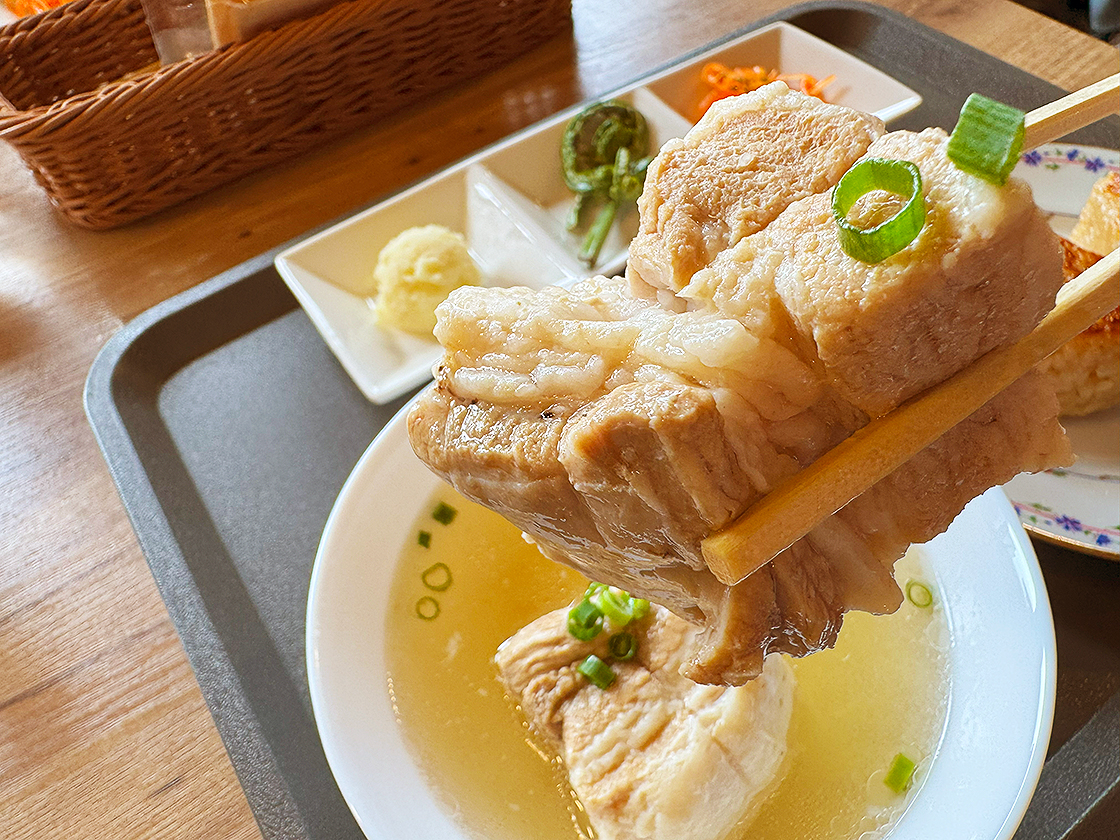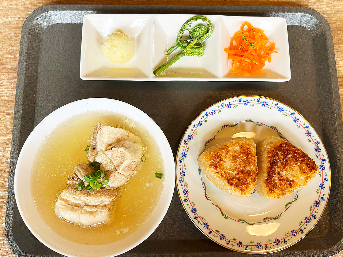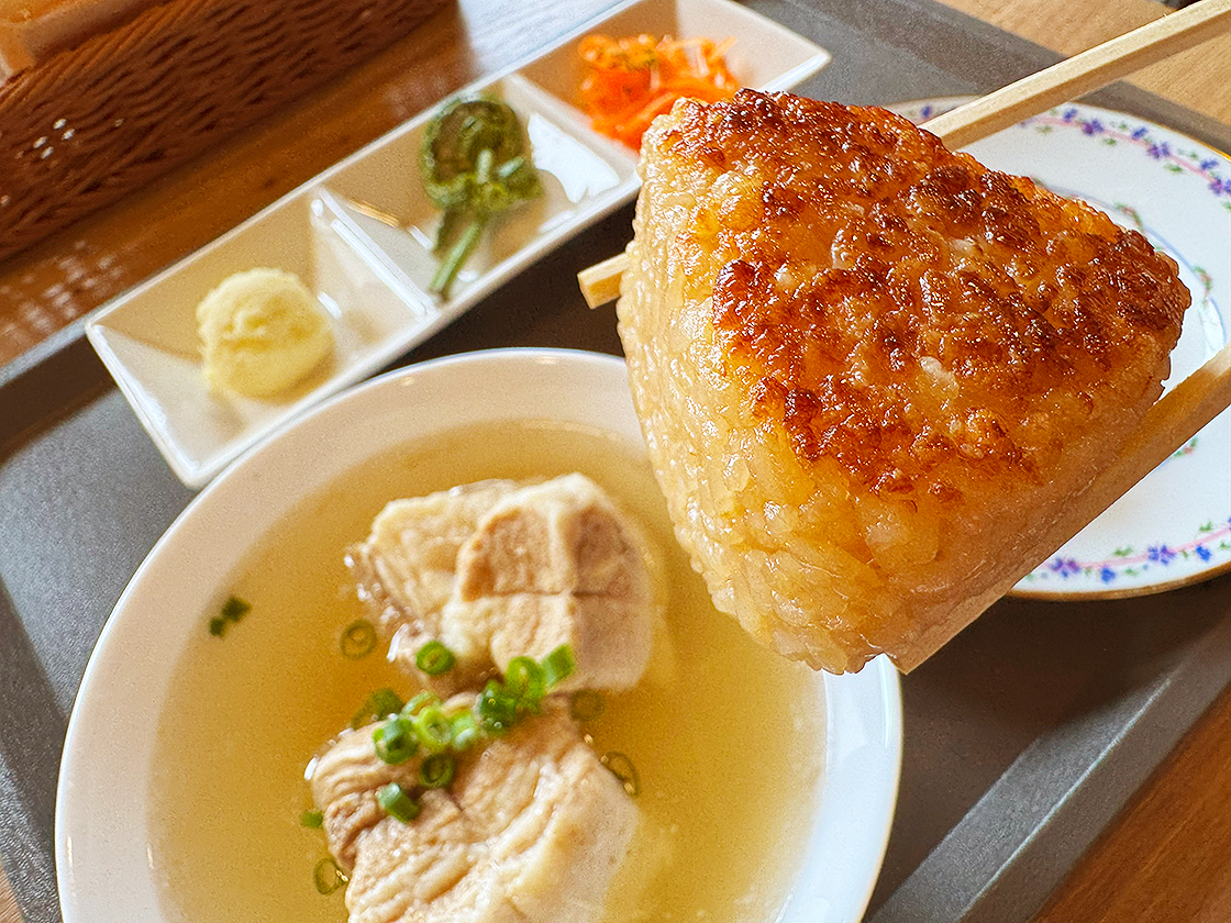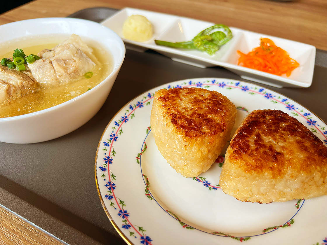 豚の旨味が溶け込んだ出汁と焼きおにぎりは相性抜群で、二通りのおいしさを堪能できますよ♪