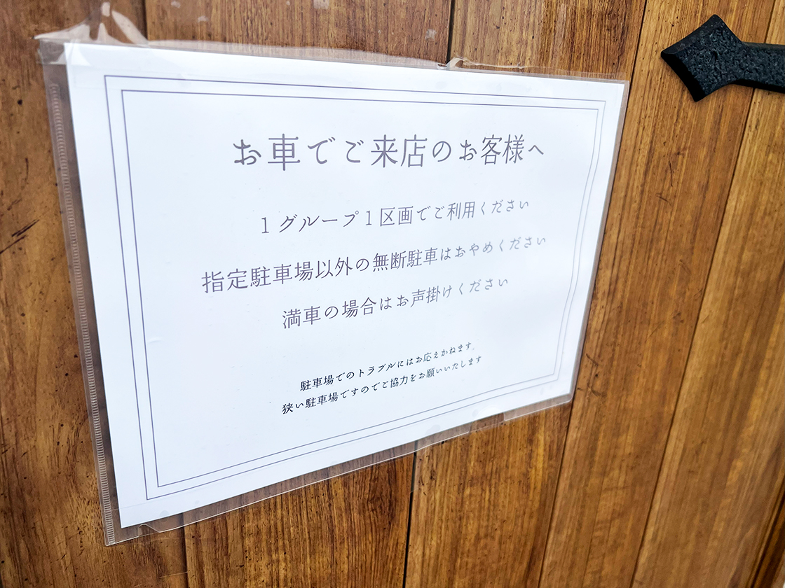 店舗前に駐車場(3台分)がありますが、“1グループ1区画”の利用に協力してくださいね♪