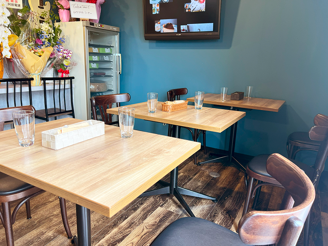 テーブル(10席)やカウンター席(4席)があるほか、テラス(8席)もあります!