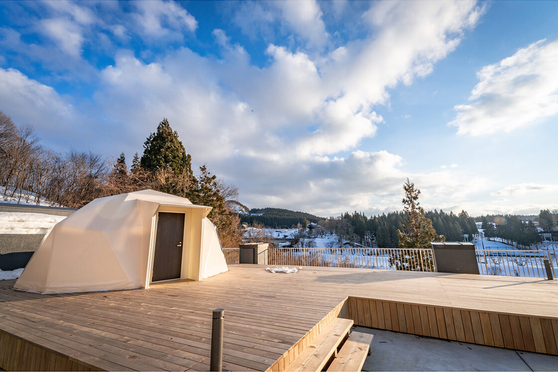 豊かな自然の中で、温泉とグランピングが融合した贅沢な非日常体験を楽しめますよ♪