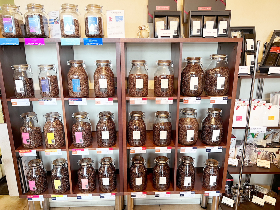 また、店内では珈琲豆も販売していて、常時20種類以上の豆が揃っていますよ!