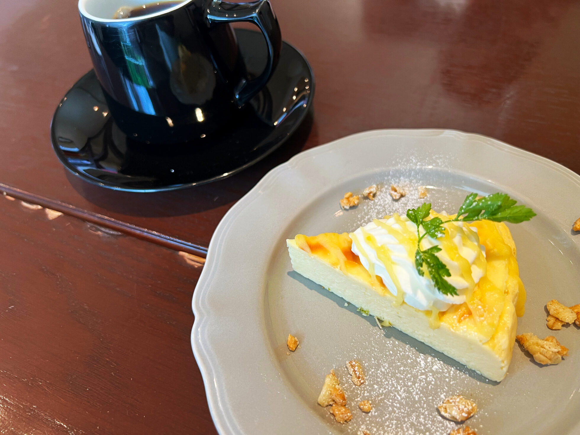 「レモンのチーズケーキ」は、口に運ぶとなめらかにとろけるように広がり、濃厚なクリームチーズのコクとまろやかさがじんわりと広がります♪