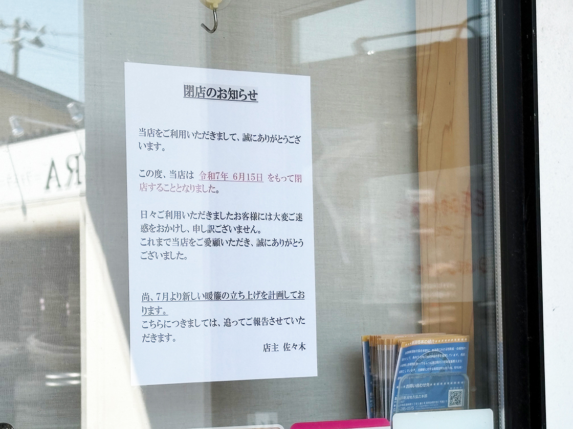 『SHINASOBA 颯々樹 (SASAKI)』が6月15日(日)に閉店となります。