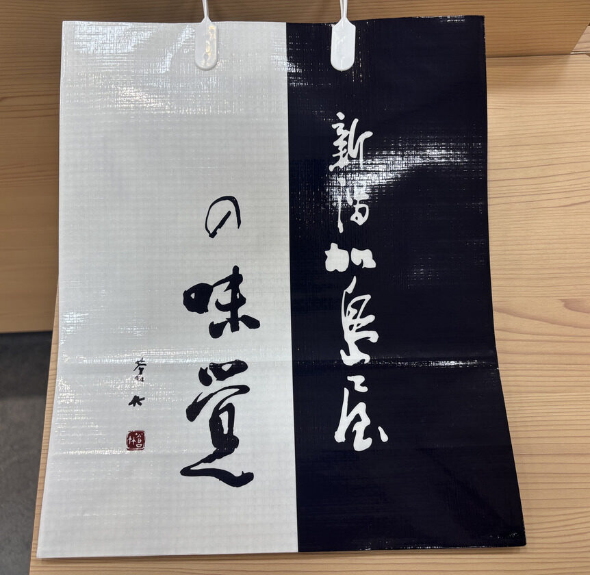 商品を入れる“紺と白の上品な手さげ袋”も特徴的で、ガタチラスタッフはお弁当を入れたりと、日常的に使っています…♪(笑)