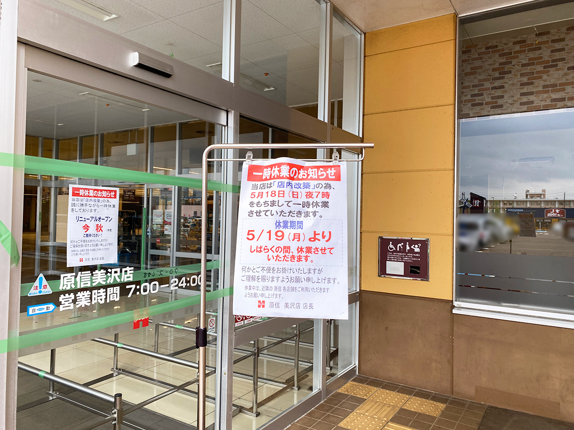 TOP > 閉店 > 【長岡市】県内最大手の食品スーパー『原信 美沢店』が5月18日より一時休業へ…!“今秋”にリニューアルオープン予定♪