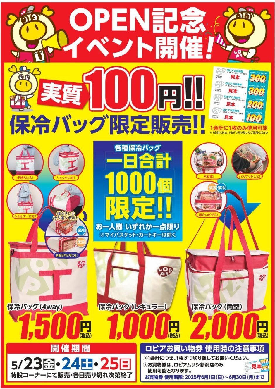 さらに、3日間(5月23日・24日・25日)限定で、「ロピアの保冷バッグ」をお得に購入できます!