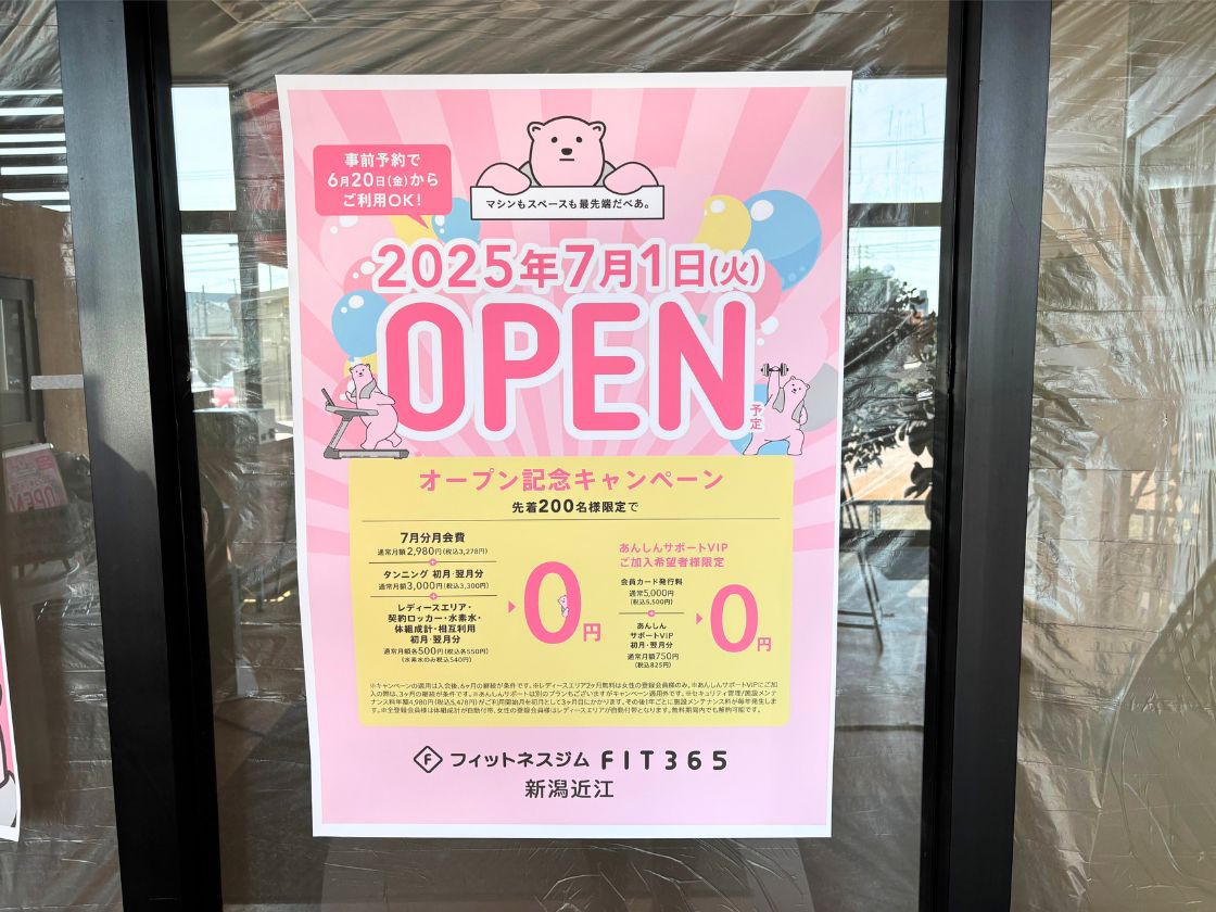 『FIT365(フィットさんろくご)新潟近江』が7月1日(火)にオープンしますよ♪