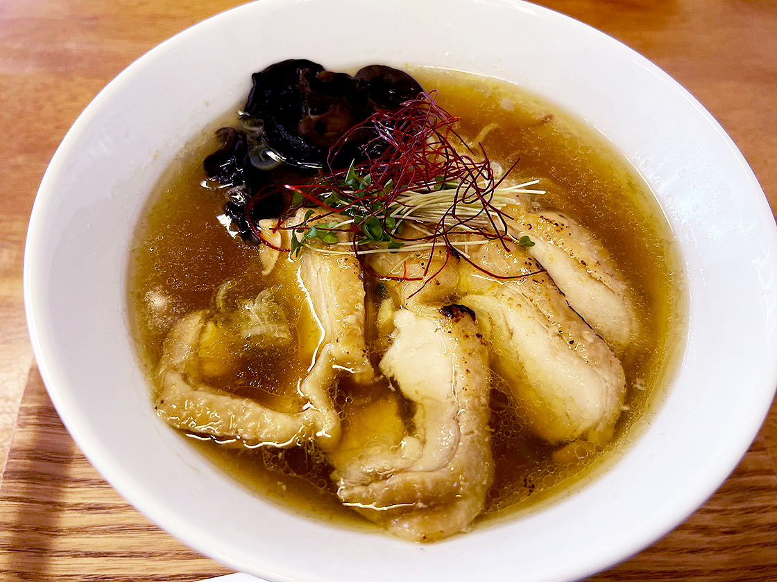 澄んだスープは鶏出汁のやさしい旨みがじんわりと広がり、見た目以上に奥深い味わい♪