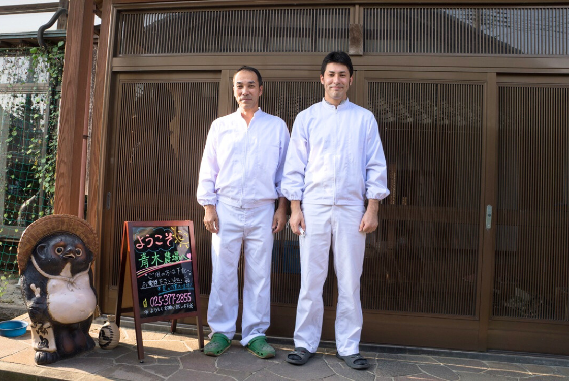 青木 弘(あおき ひろむ):新潟市西区(旧黒埼町)出身。高校卒業後、アメリカへ農業研修に参加。青木農場を継いでからは、ビジネスとしての農業経営を確立するため、米粉スイーツなどに力を入れる。現在は後継者の長男とともに奮闘中。