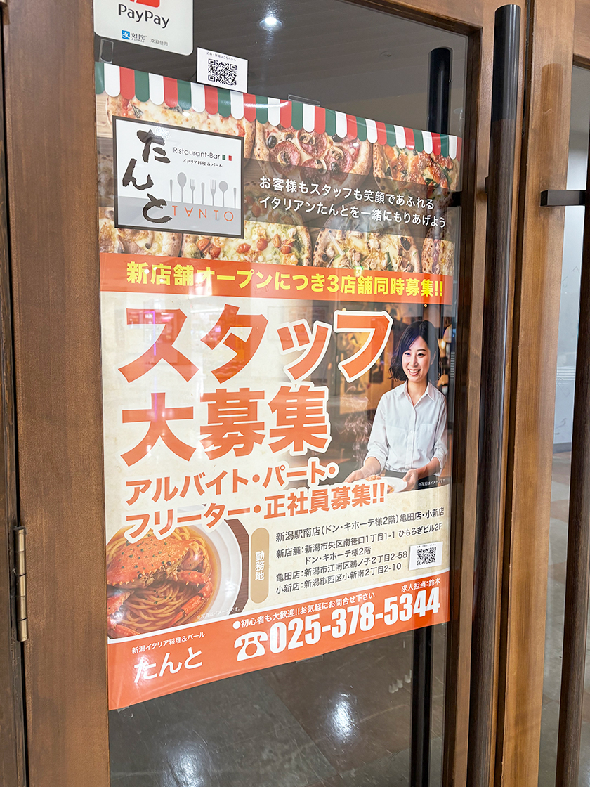 『イタリア料理&バール たんと 新潟駅南店』は、8月1日(金)にオープン予定です♪