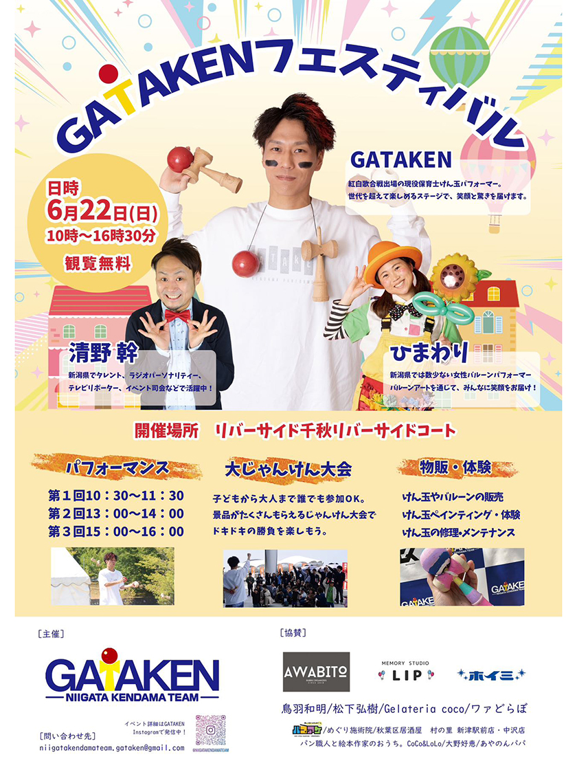 TOP > イベント > 【長岡市】親子で楽しめるイベント『GATAKENフェスティバル』が6月22日に開催!けん玉体験&じゃんけん大会など盛りだくさん♪