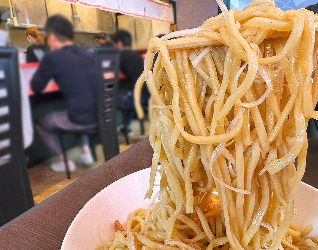 全体をしっかり混ぜると特製ダレが麺に絡んで、口いっぱいに香ばしさと旨味が広がります!
