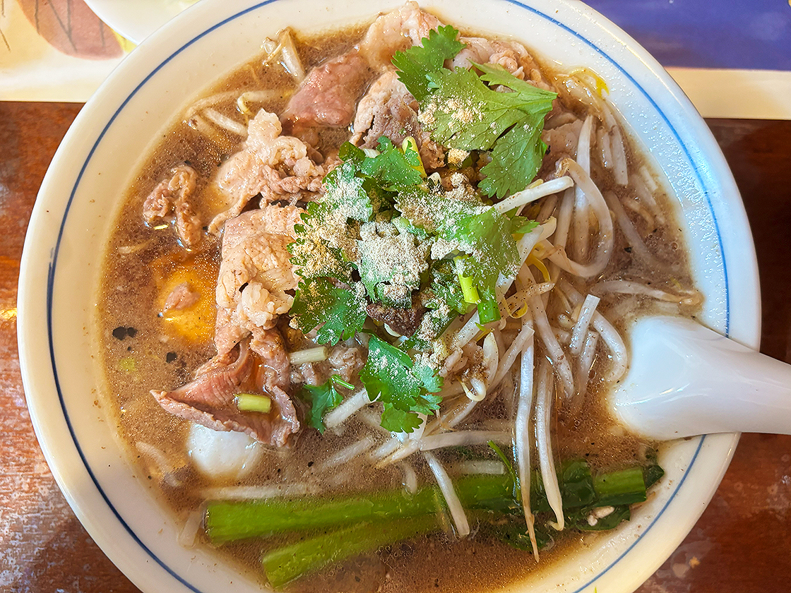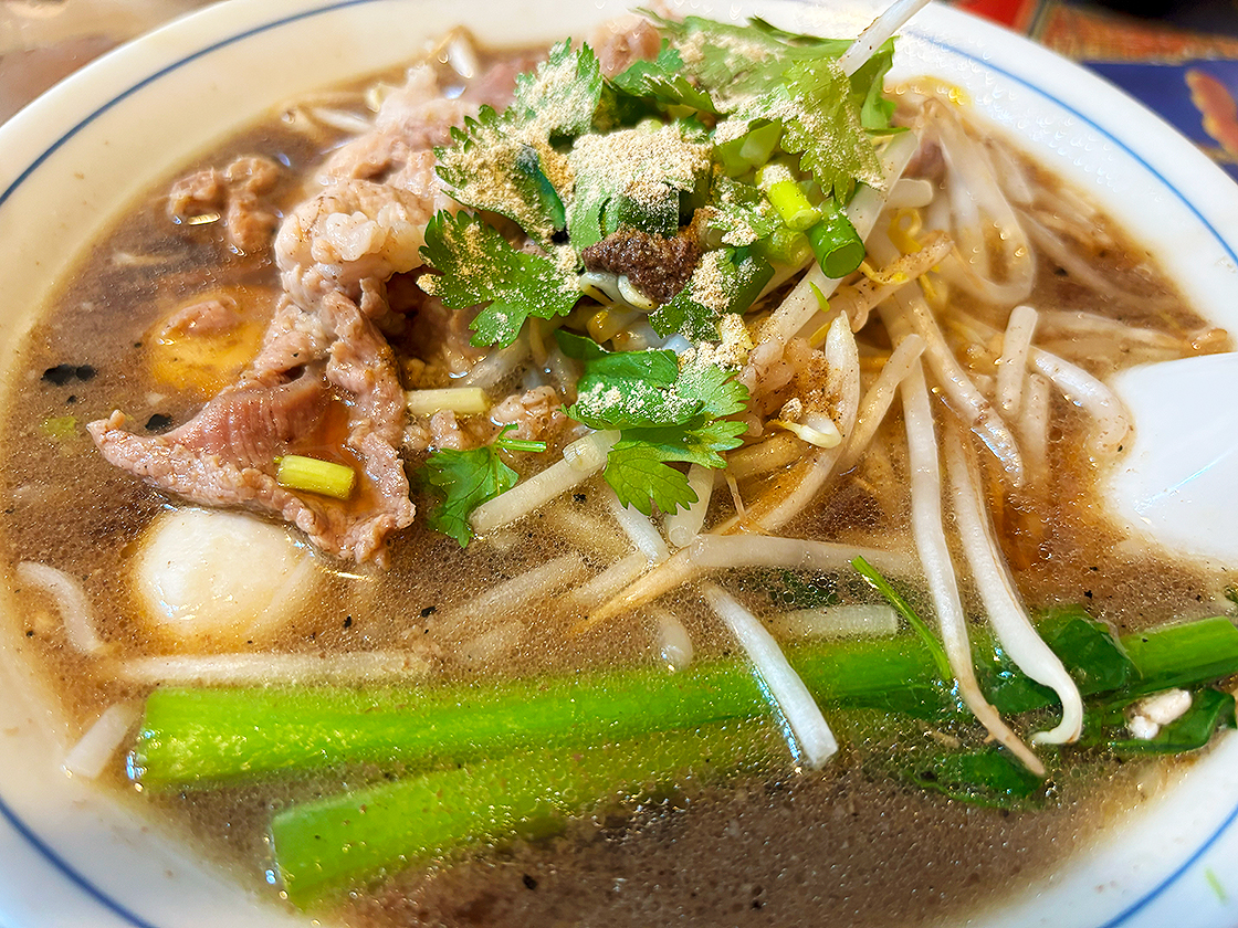 たっぷりの「お肉・パクチー・もやし・すり身団子」が入っていて、食べ応えも十分ですよ♪