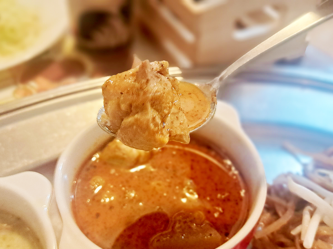 ココナッツミルクのまろやかな甘味のあとに、じんわりとした辛味が広がる奥行のある味わい!