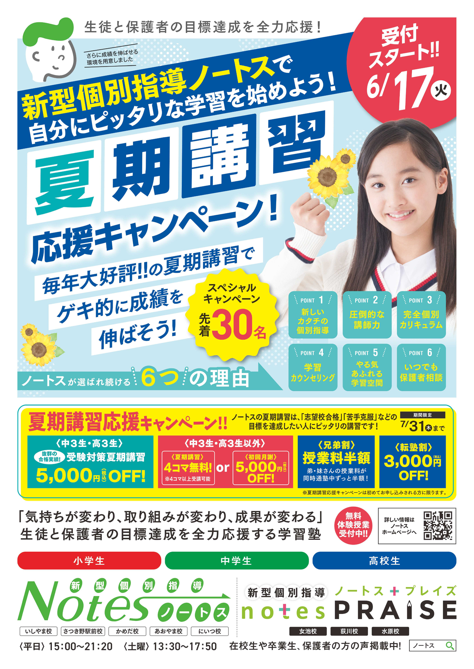 夏期講習の受付は、6月17日(火)からスタート!今ならお得なキャンペーンが利用できるチャンスです!
