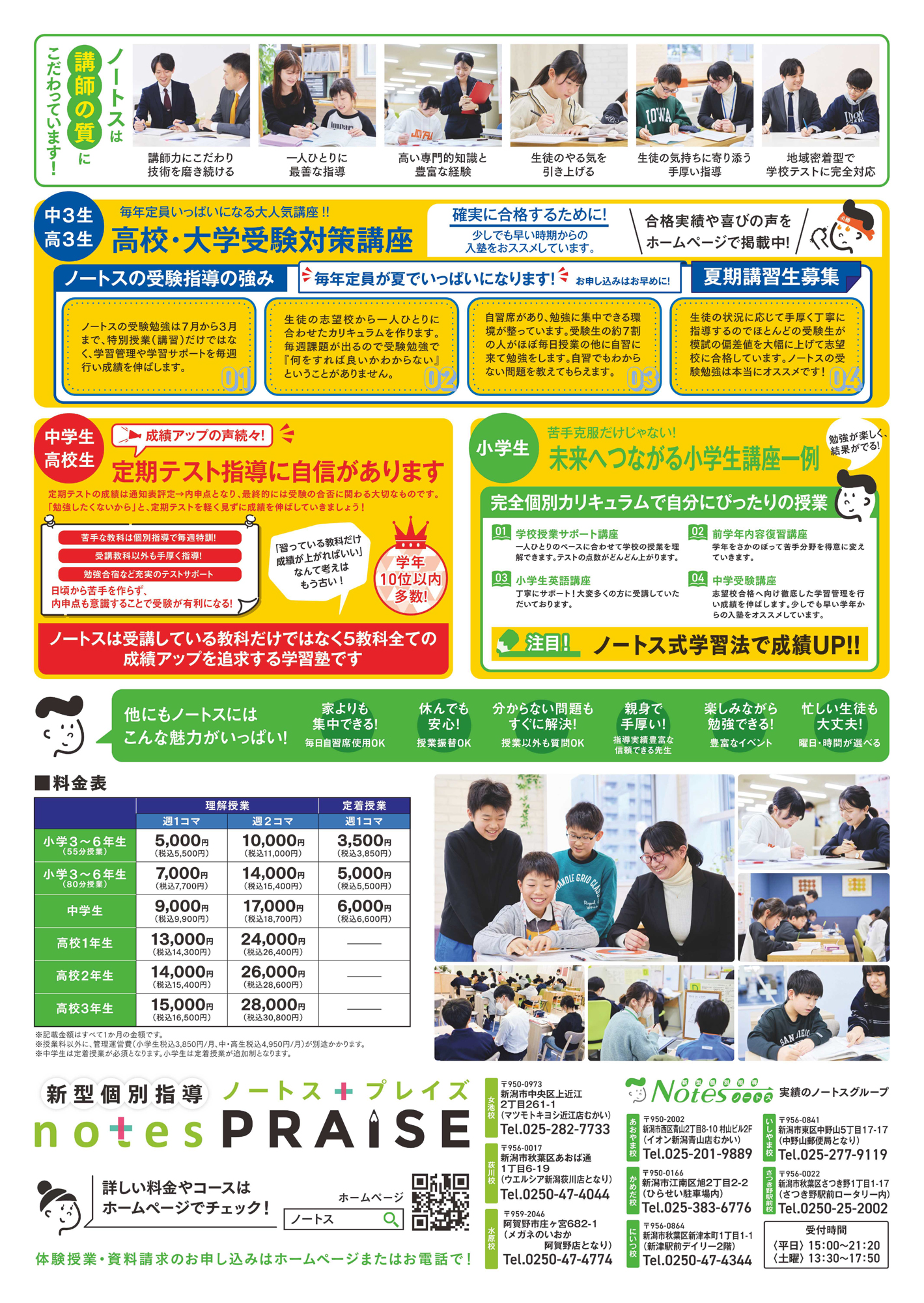 そんな悩みを持つ新潟市・阿賀野市の保護者の皆さんに、今注目されている『新型個別指導ノートス/ノートスプレイズ』をご紹介します!