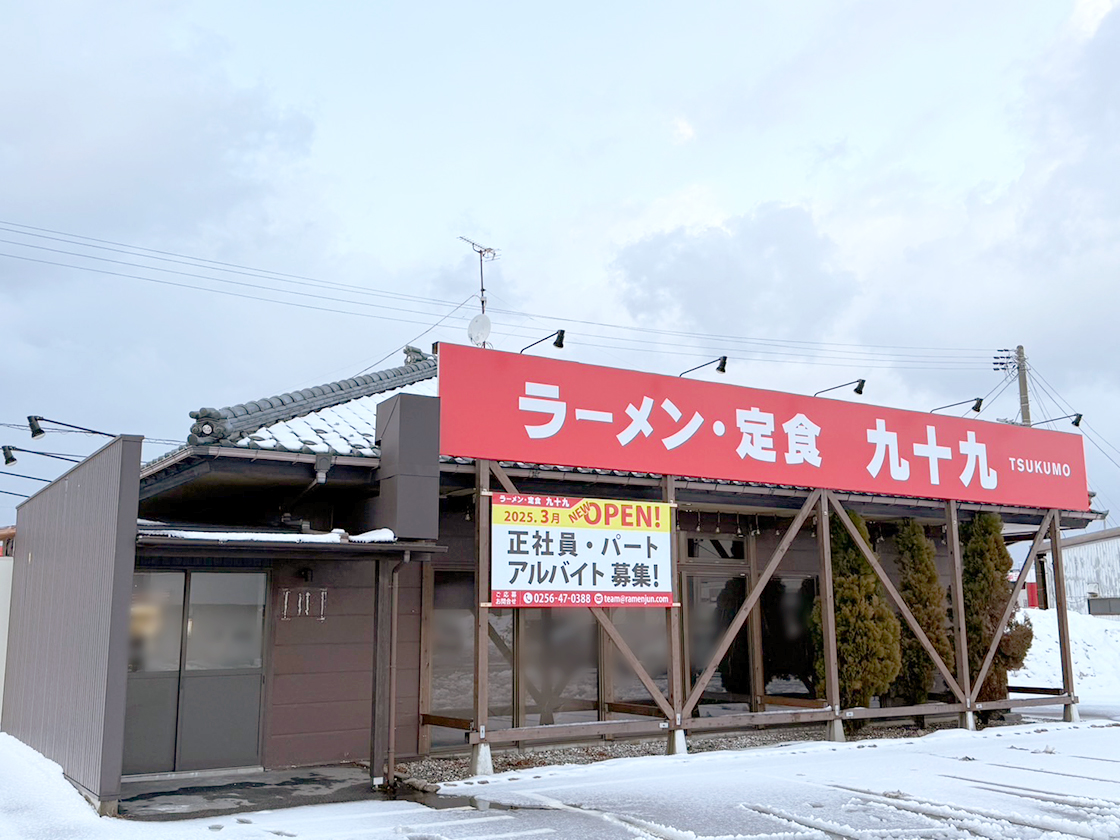 運転免許センター近くに、人気ラーメングループ「潤」系列の新店『ラーメン・定食 九十九』が3月5日にオープンしました!