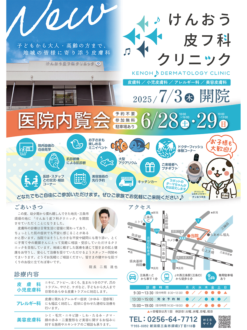 『けんおう皮フ科クリニック』が7月3日(木)に開院しますよ♪