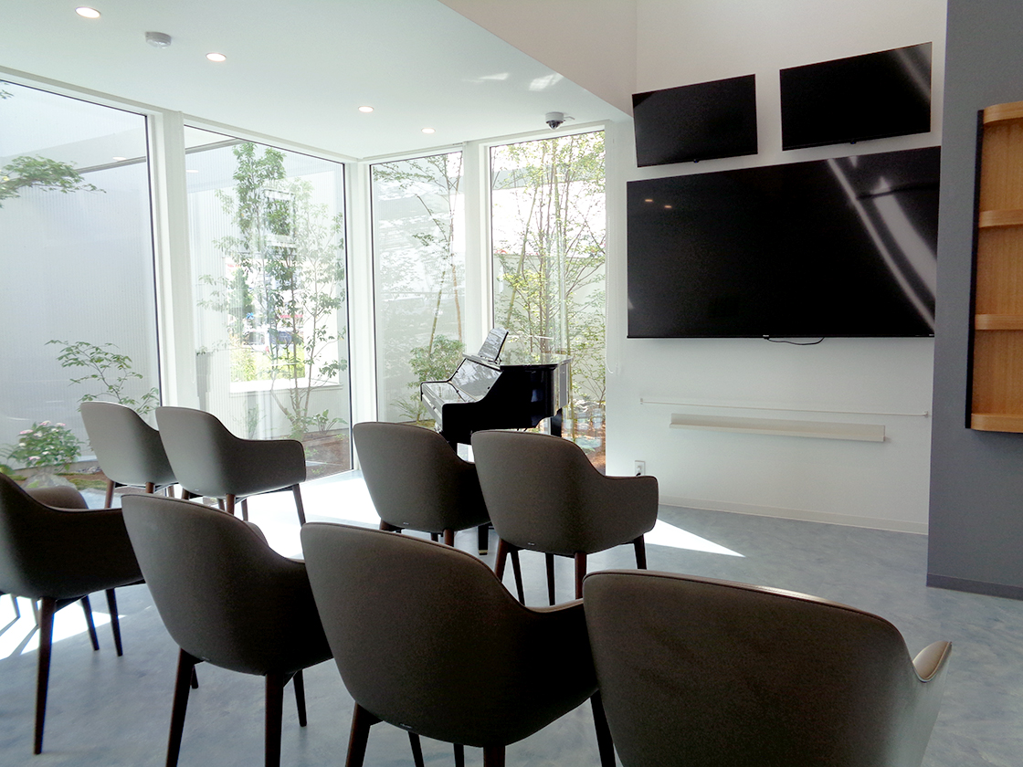 待合室には、チンアナゴやカクレクマノミなどが泳ぐ“幅2mの海水アクアリウム”を設置しています!
