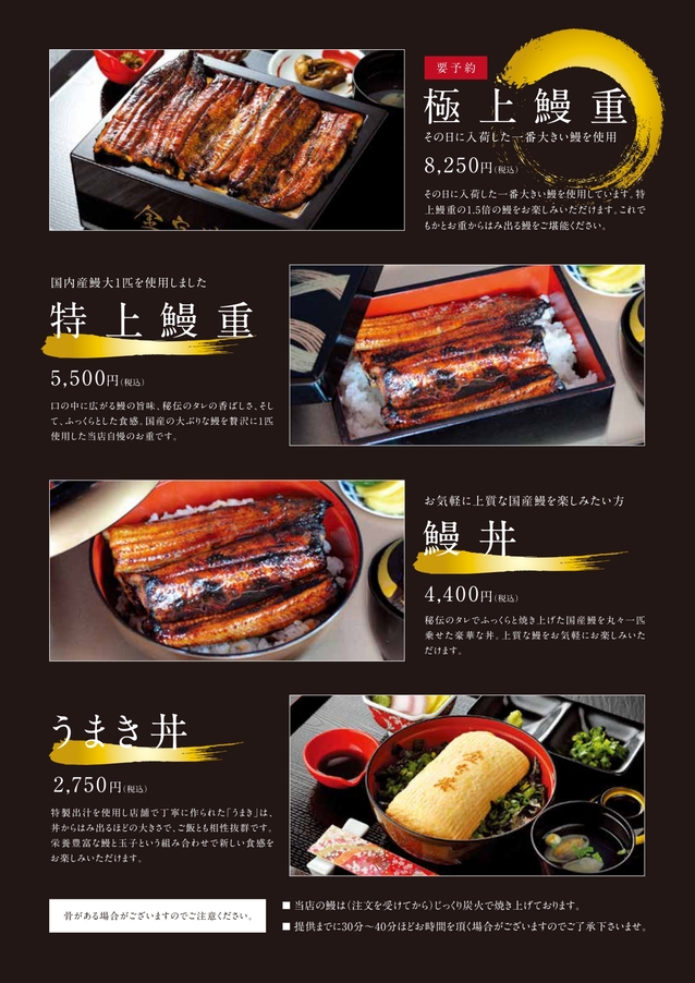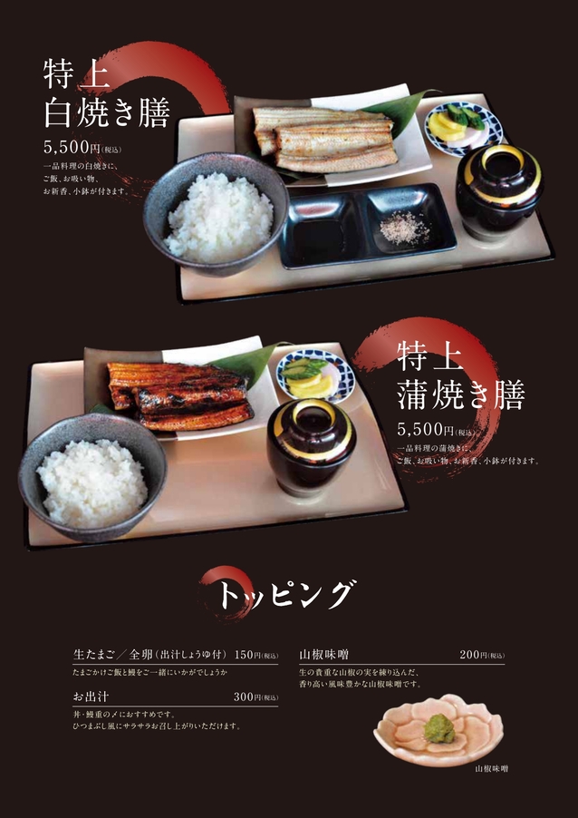 炭火香る蒲焼きやふっくら柔らかな白焼きなど、あなたの好みにぴったりの一品がきっと見つかるはずです♪