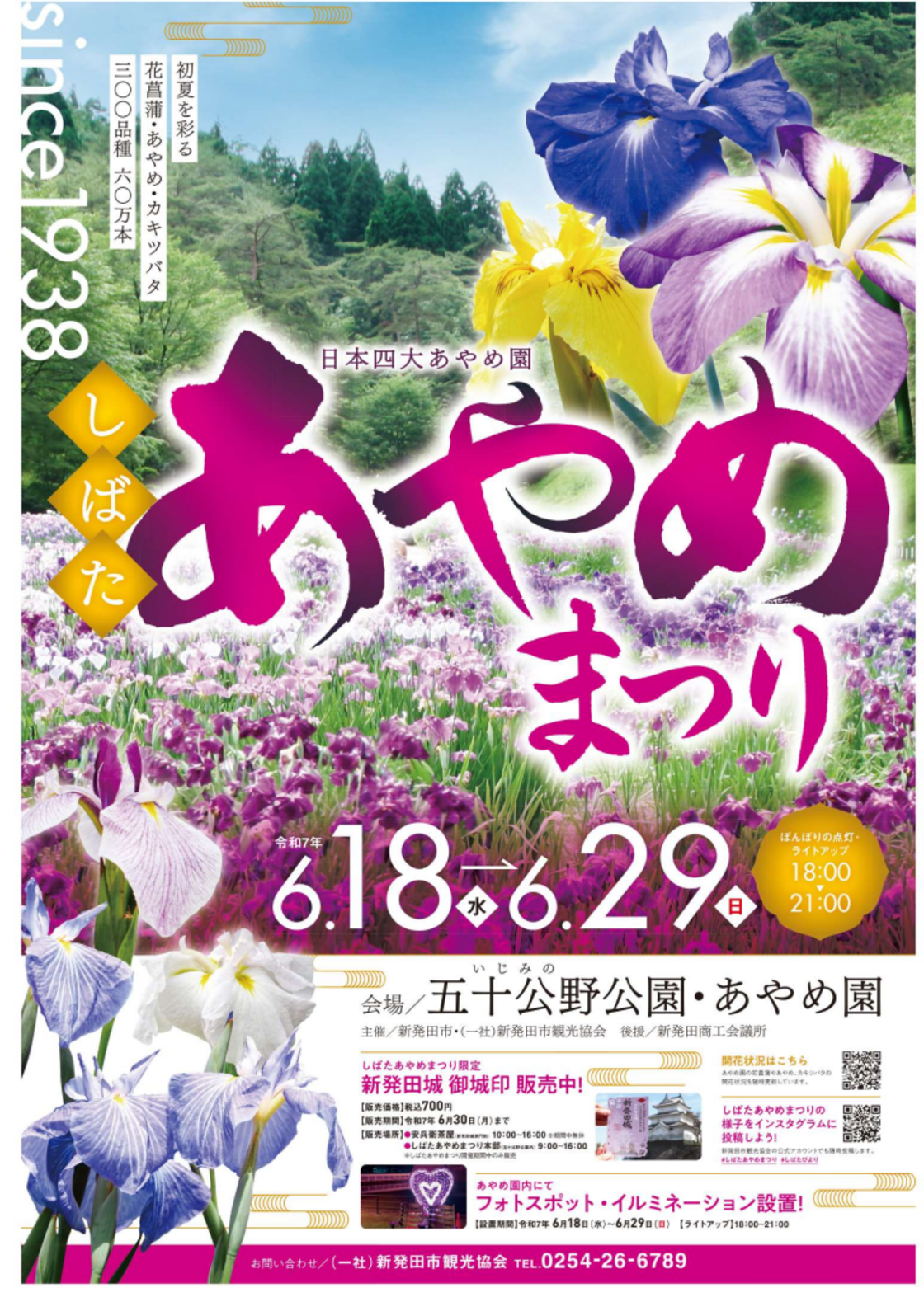 『しばたあやめまつり(会場:五十公野公園)』が6月18日(水)~29日(日)に開催されますよ♪