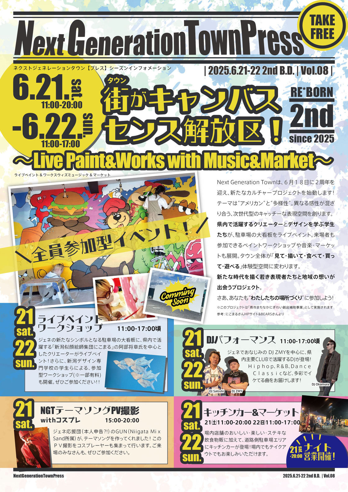 6月21日(土)には、「ジェネ応援団のGUN(Niigata Mix Sand所属)」さんが作った“ジェネレーションタウンのテーマソングPVの撮影”も行われるんだとか♪
