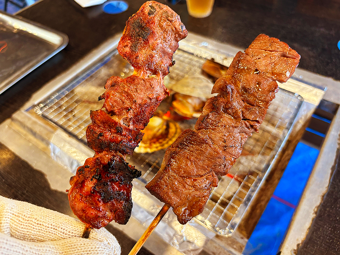 牛串のジューシーさと豚タン串のコリッとした食感が堪りません…!