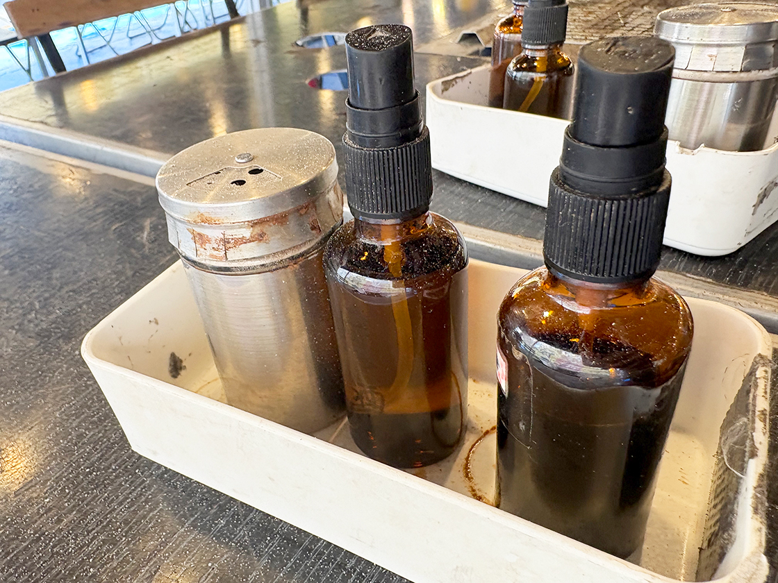 お好みの焼き加減になってきたら、卓上の日本酒を少し吹きかけます。