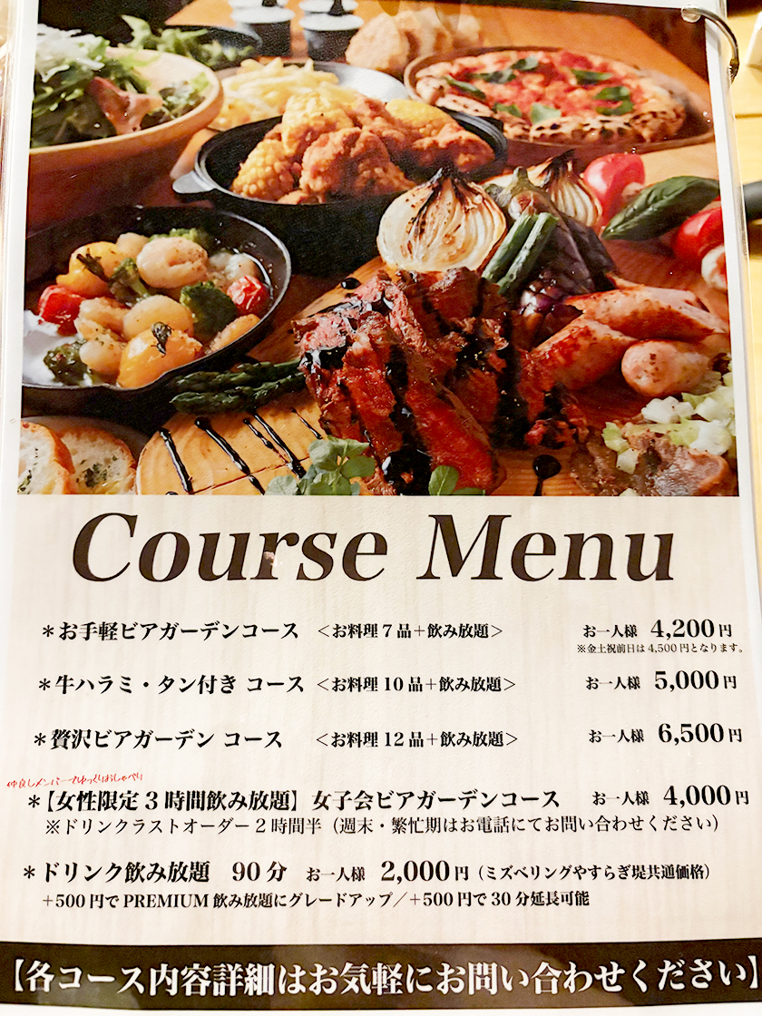 ガタチラスタッフは、「贅沢ビアガーデンコース※料理13品+2時間飲み放題(6,500円)」を堪能してきましたよ♪