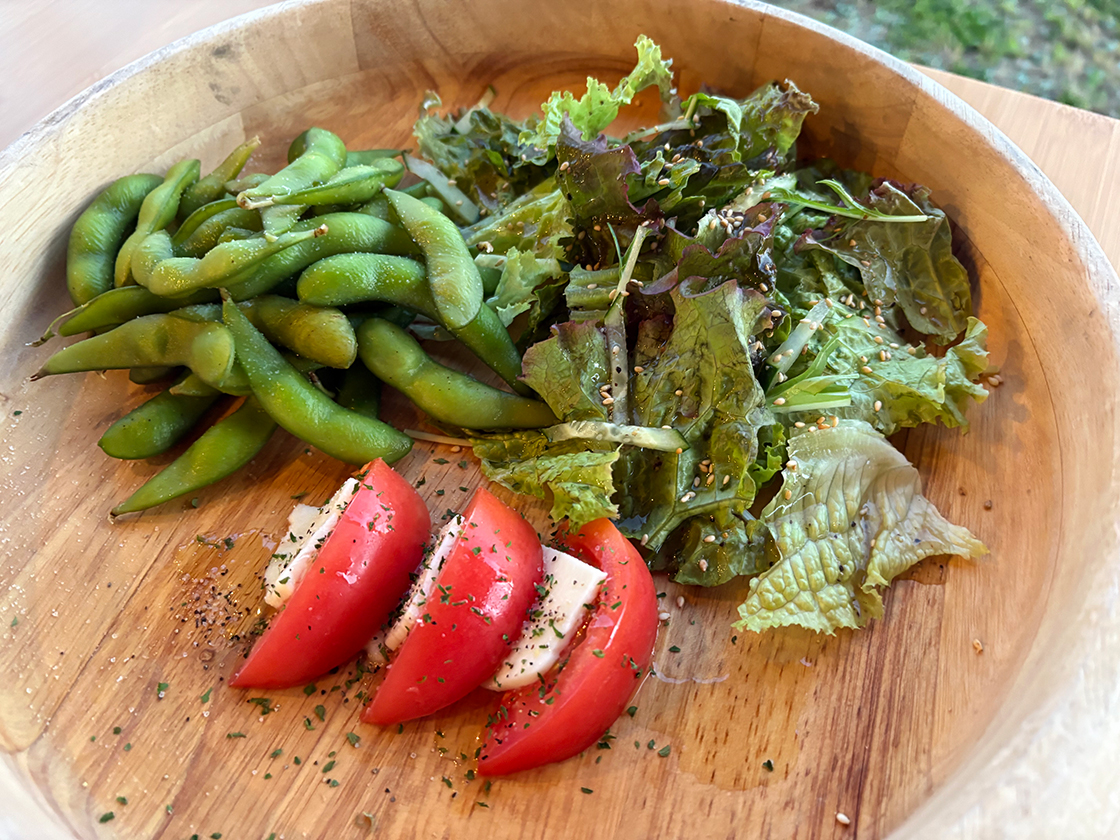 まずは、「枝豆・トマトとモッツアレラのカプレーゼ・チョレギサラダ」が盛り合わせで運ばれてきました!
