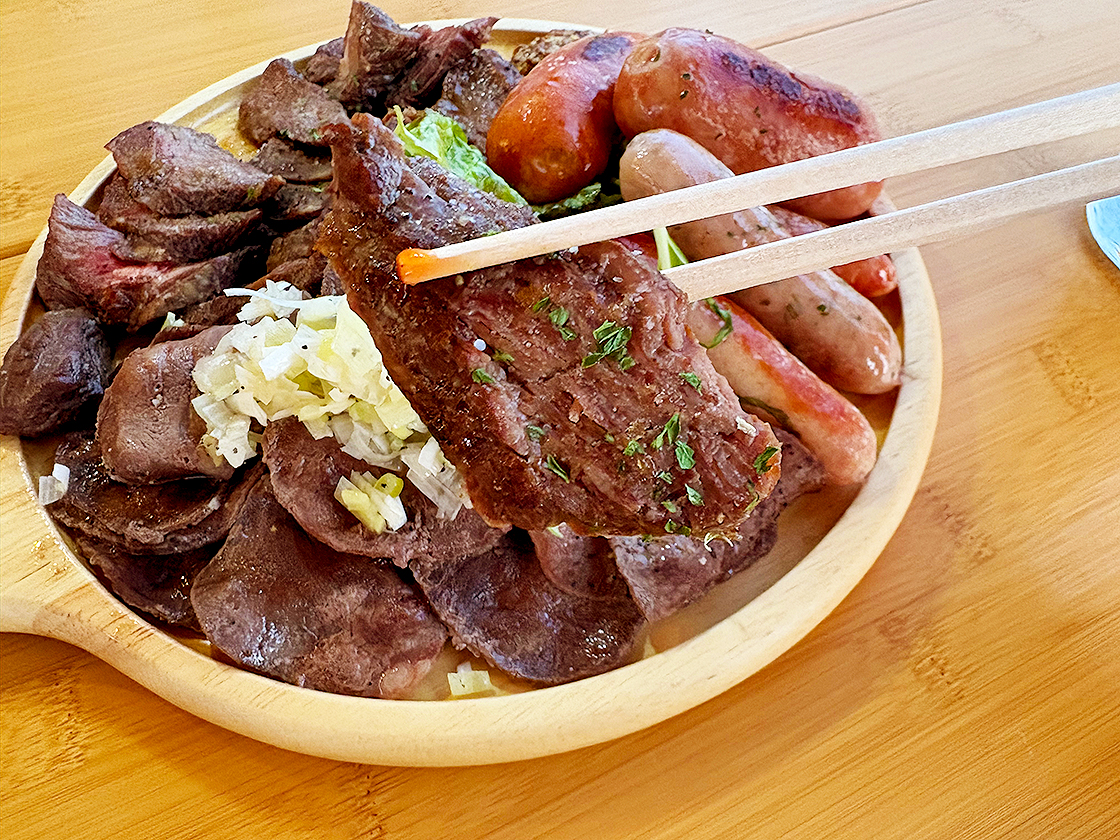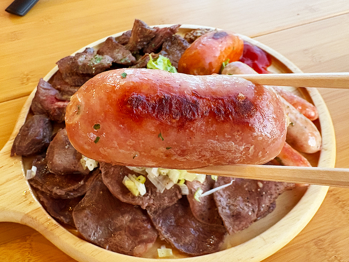 メイン料理は、「牛ハラミグリルステーキと豚タン塩焼きの盛り合わせ」と「ソーセージの盛り合わせ」です!