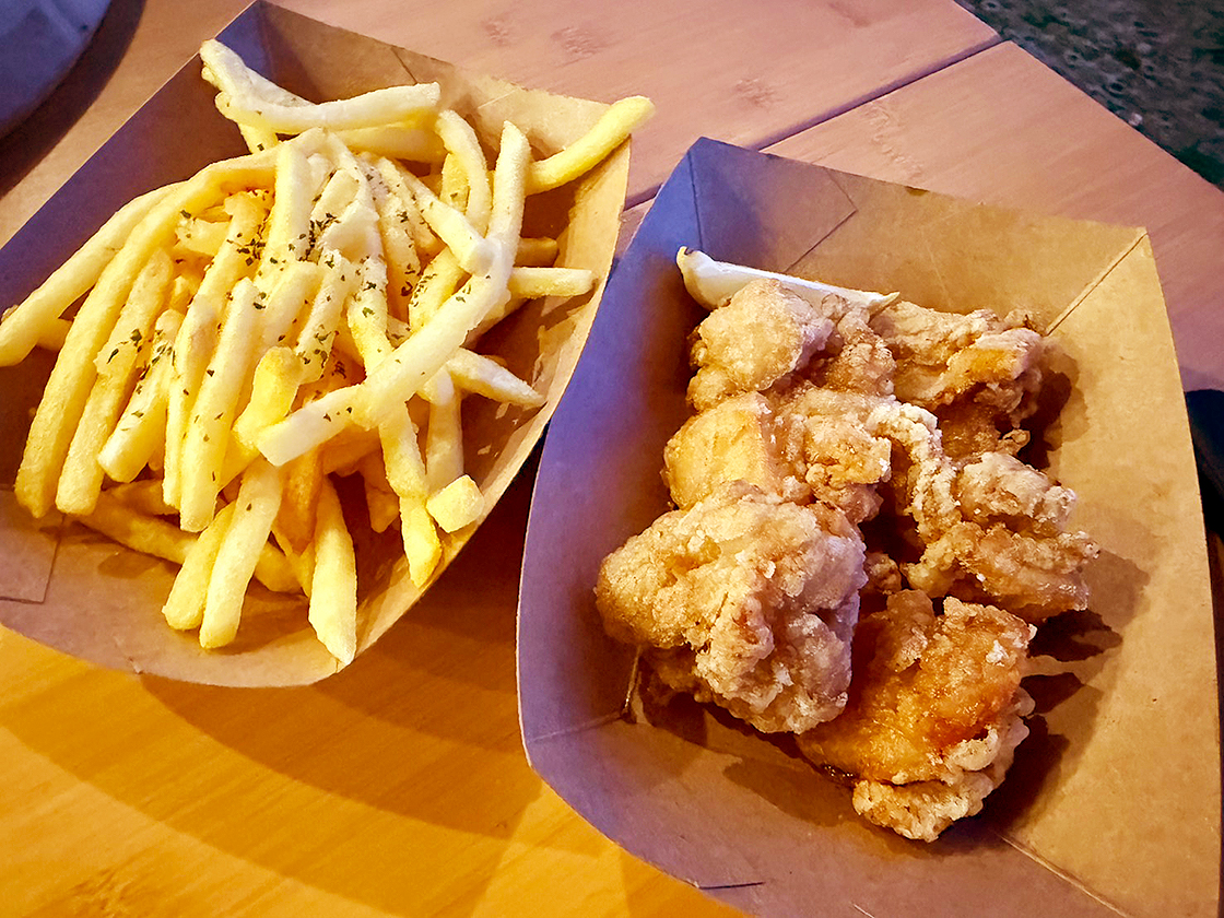 こんがり揚がった「フライドポテト」と「若鶏の唐揚げ」は、ビールのおつまみにぴったりな最強の組み合わせ♪