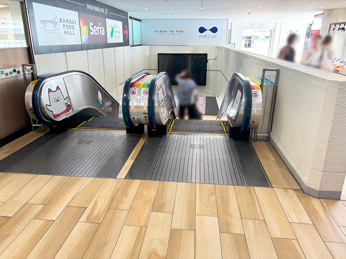 「万代シテイバスセンター」のエスカレーターを上ってすぐにある、「みかづき 万代店」の向かいですよ!