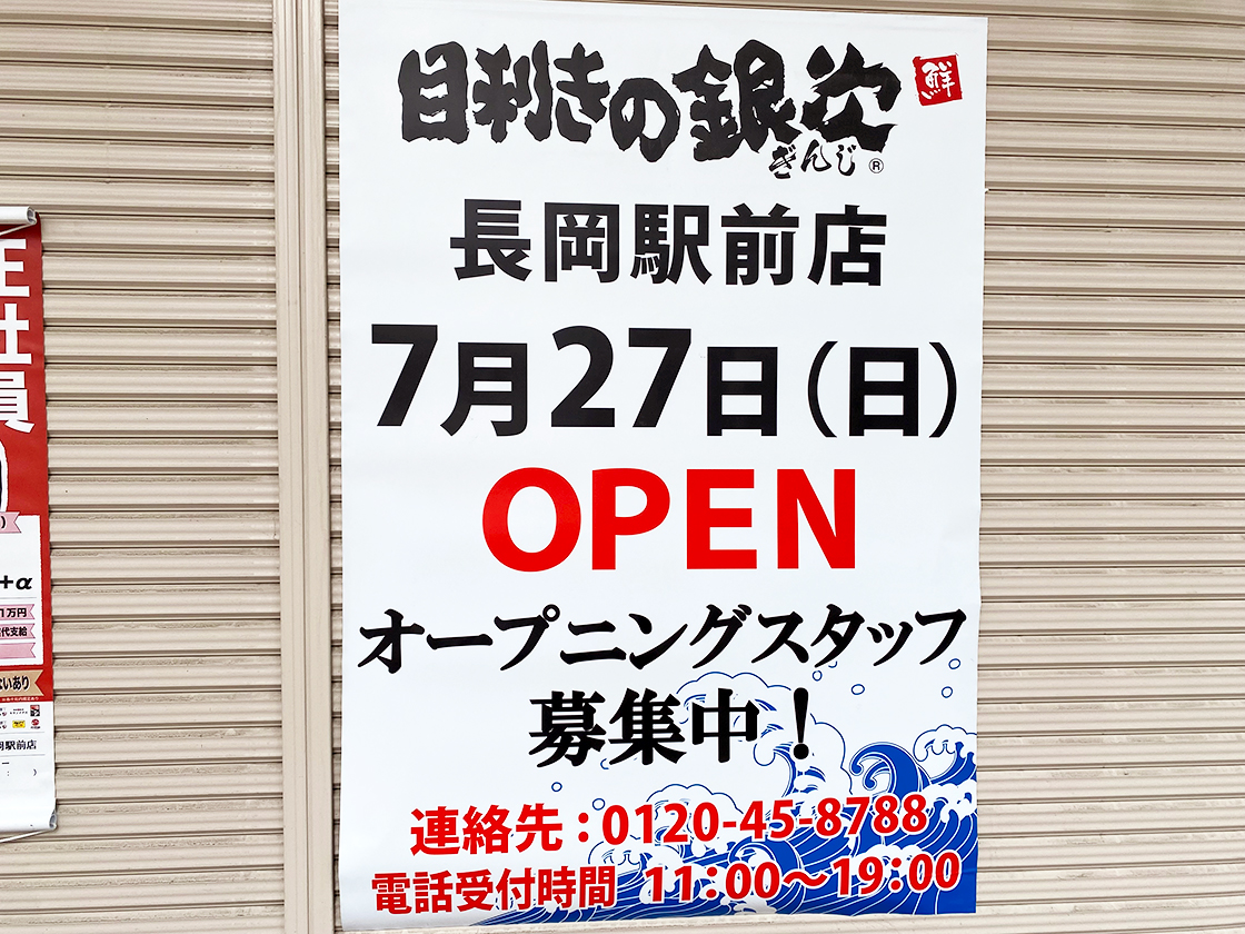 『目利きの銀次 長岡駅前店』は、7月27日(日)にオープン予定です!
