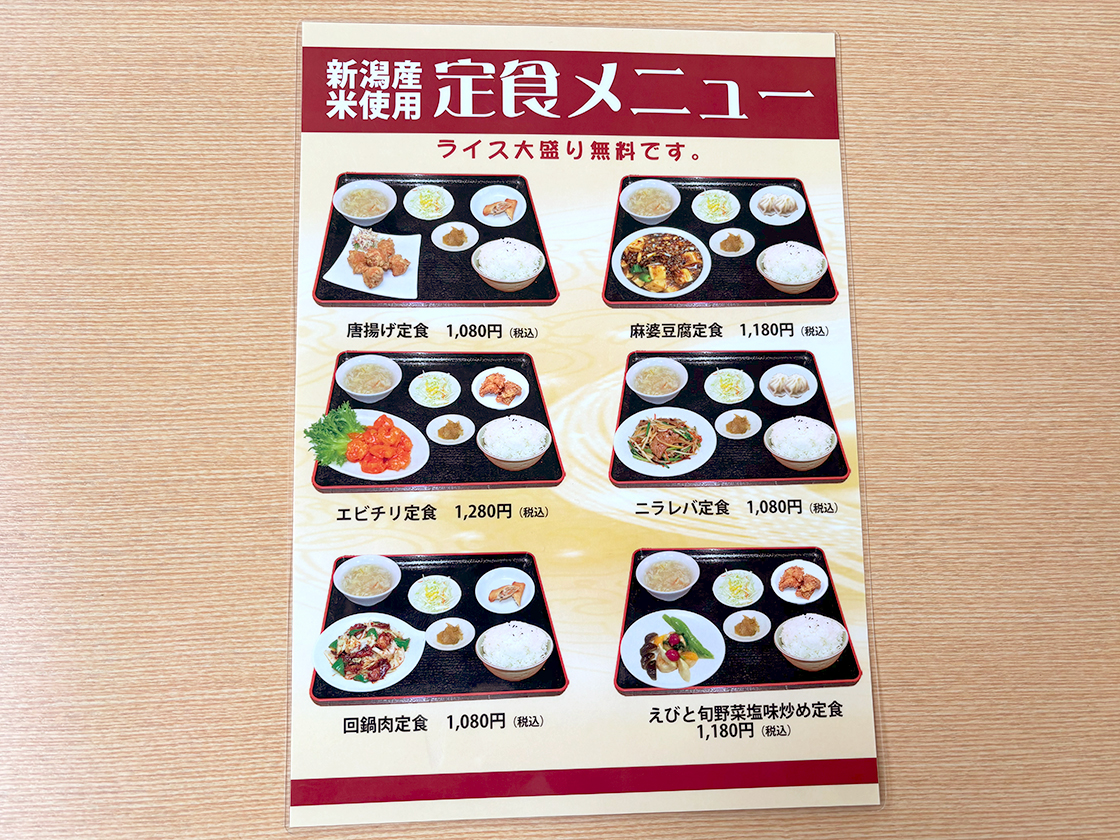 定食メニュー(新潟産米使用、ライス大盛り無料)