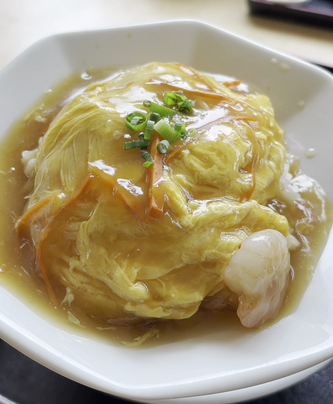 “卵の柔らかさ・餡のまろやかさ・海老の食感”が絶妙なハーモニーを奏でていて、一口ごとに幸せを感じられますよ♪