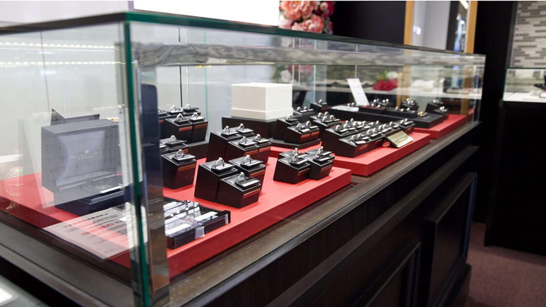 “華やかな商品ディスプレイや上質なインテリア”が並ぶ非日常的な空間で、指輪選びを楽しめますよ!