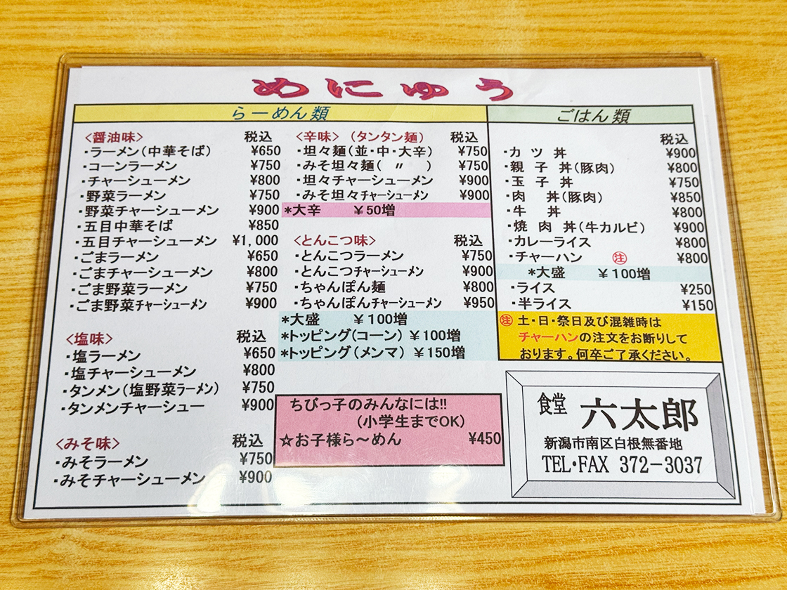 新潟市南区にある老舗の『食堂 六太郎』は皆さんご存じですよね。